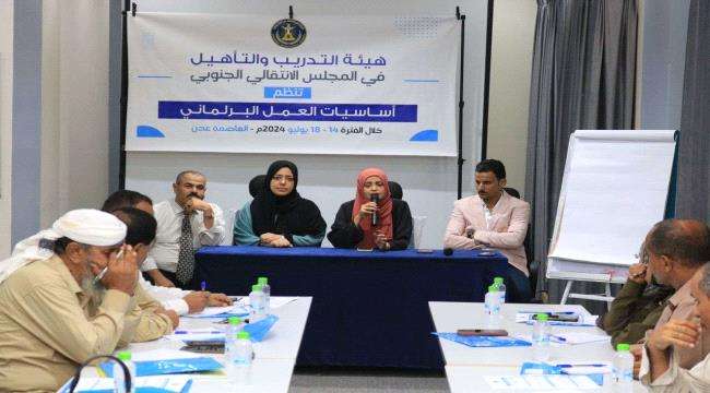 نظمت هيئة التدريب والتأهيل المساعدة لهيئة رئاسة المجلس الانتقالي الجنوبي، اليوم الأحد، في العاصمة عدن، دورة تدريبية بعنوان "أساسيات العمل البرلماني".