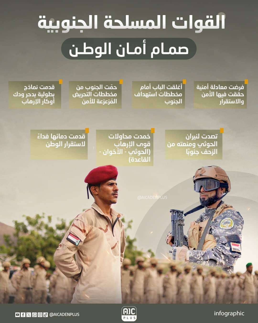 وتذكروا حجم التضحيات التي قدمتها القوات المُسلحة والأمنية الجنوبية، طيلة السنوات الماضية.