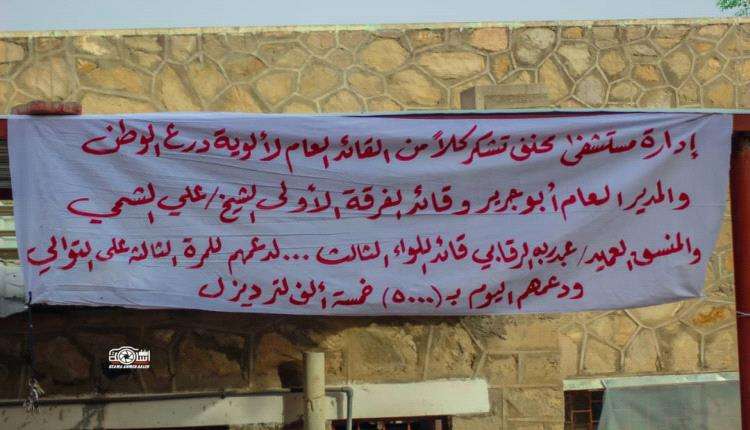 حيث دعمت قوات درع الوطن للمرة الثالثة تواليا المستشفى بشحنة وقود تقدر بـ 5000 لتر ديزل، لتشغيل المولد وتوفير طاقة كهربائية.
