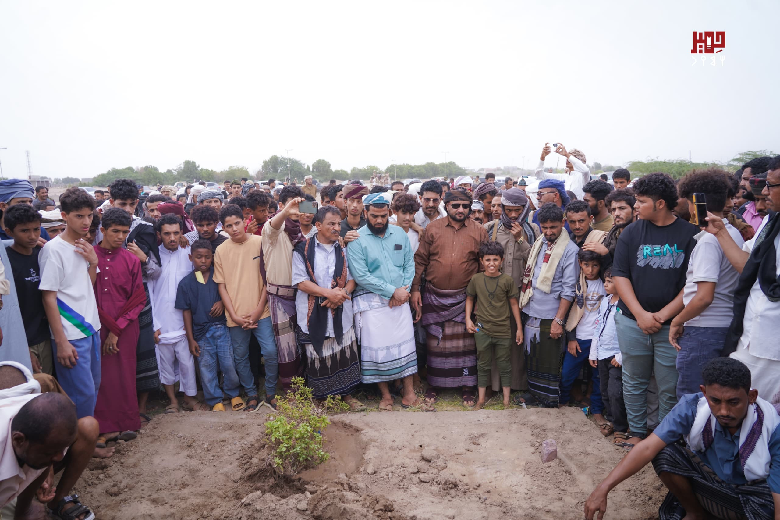 وسار موكب التشييع الذي تقدمته أسرة الشهيد ومعهم عدد من القيادات العسكرية والأمنية والمشايخ والشخصيات الاجتماعية من مسجد الفردوس إلى مقبرة بئر أحمد حيث ووريَ جثمانه الثرى.