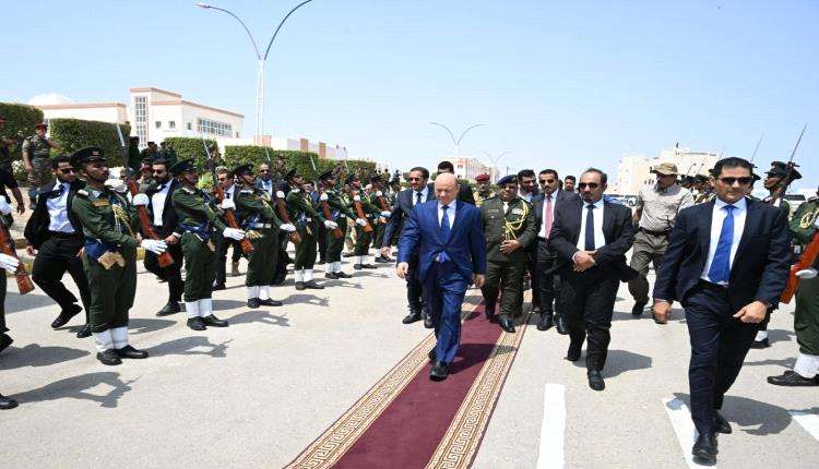 رئيس مجلس القيادة وعضوا المجلس عبدالله العليمي وعثمان مجلي يزورن كلية الشرط بحضرموت
