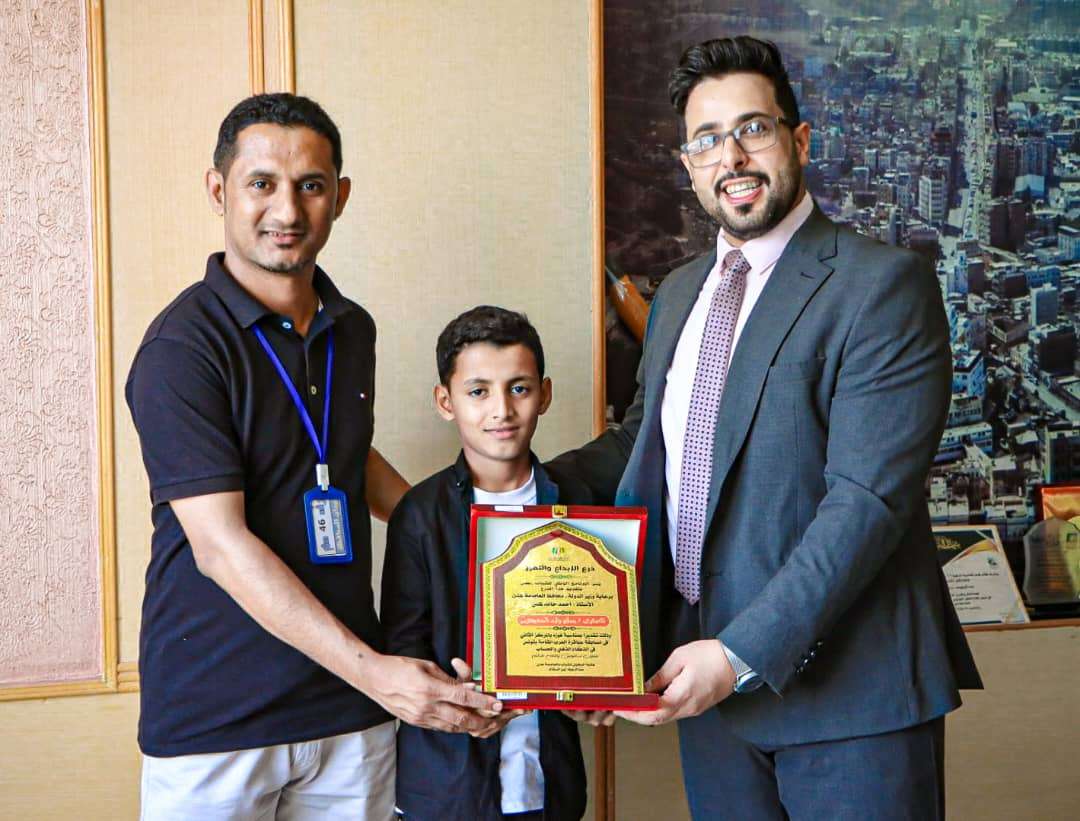 كرم وكيل العاصمة عدن، الأستاذ عبد الرؤوف السقاف، الطالب يسلم وليد السعيدي الكلدي، الذي حقق المركز الثاني في بطولة تونس للحساب الذهني وحاز على لقب "عبقري عباقرة العرب" لعام 2424م.