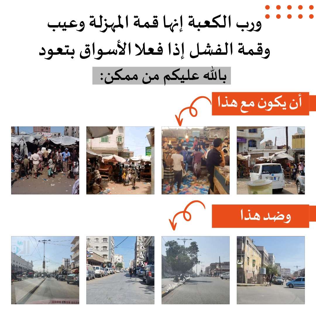 وتداول ناشطين صورا توضح الفرق بين فترة تواجد الأسواق وما بعدها معلقين على أن المطلوب اليوم هو اخراج ونقل كل الاسواق المستحدثة والتي تسبب اعاقة الحركة واحداث الفوضى إلى مواقع ملائمة.