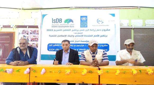 دشنا مدير عام يهر أ.محضار علوي عوض ومدير مكتب الزراعة والري أ. محمد عبدالحافظ يوسف دورة تدريبية مشروع دعم زراعة البُن ضمن برنامج التضامن للتسريع والممول من برنامج الأمم المتحدة الإيمائي والبنك الإسلامي للتنمية المنفذ من قبل مؤسسة إنجاز للتنمية مشروع تدريب عدد (10) مزارعي البُن مديرية يهر يافع محافظة لحج ومنحهم آلة لتقشير البُن وخزانات لجمع مياه الأمطار و (15) شتلة بُن لكل مزارع ، وبحضور المدرب المهندس الاستشاري علي عبدالرحمن والمهندس فوزي عدنان سعيد والاعلامي ماجد صالح باعوض .