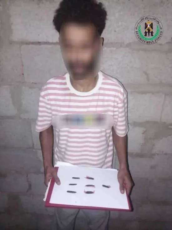 ألقت قوات الحزام الامني في محافظة لحج، اليوم الاثنين، على أحد مروجي الحشيش في نقطة أمنية بمنطقة الحسيني.