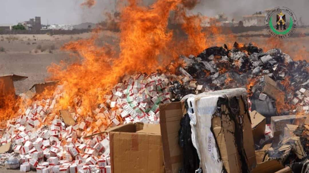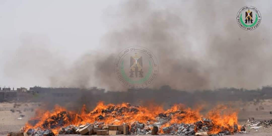الحزام الأمني يتلف 3.6 مليون كبسولة من دواء مخدر تم ضبطه في عمليات نوعية