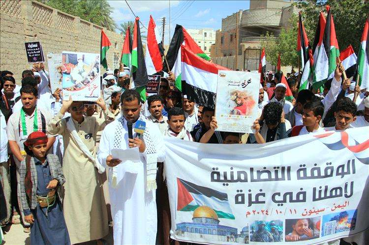 وعبر بيان الوقفة عن اعتزازه الشعب اليمني بالمقاومة الفلسطينية الباسلة وهي تسطر أروع ملاحم الشموخ والبطولة والتي أذهلت العالم وصمدت على مدى عام كامل في معركة طوفان الأقصى، في تطور عسكري لافت مرغ أنف الاحتلال الصهيوني وداعميه في الوحل //.