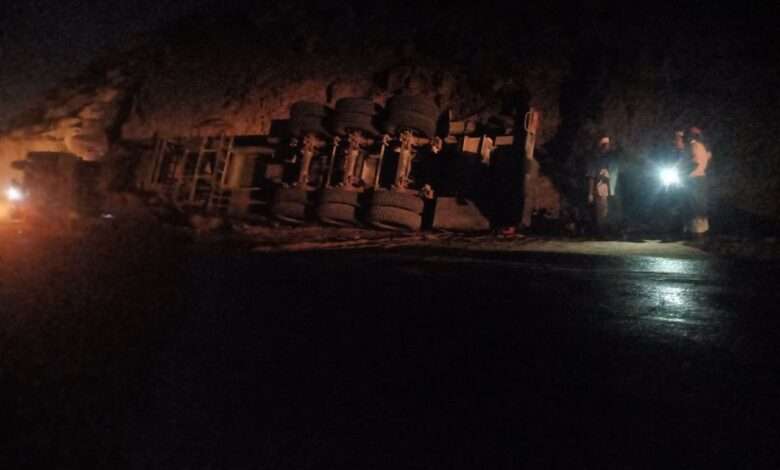 حضرموت.. انقلاب قاطرة محملة بالمازوت يسفر عن وفاة السائق وإصابة مرافقه
