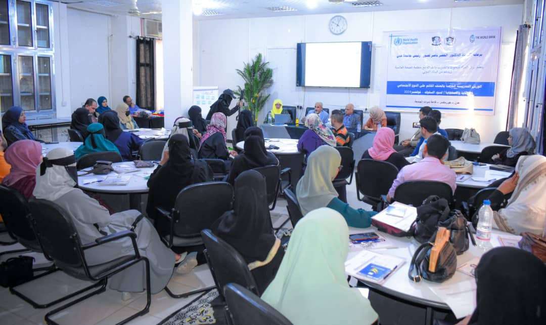 ناقش ورش تدريبية نظمها مركز المرأة للبحوث والتدريب بجامعة عدن بالشراكة مع منظمة الصحة العالمية وبدعم من البنك الدولي، اليوم، العنف القائم على النوع الاجتماعي.