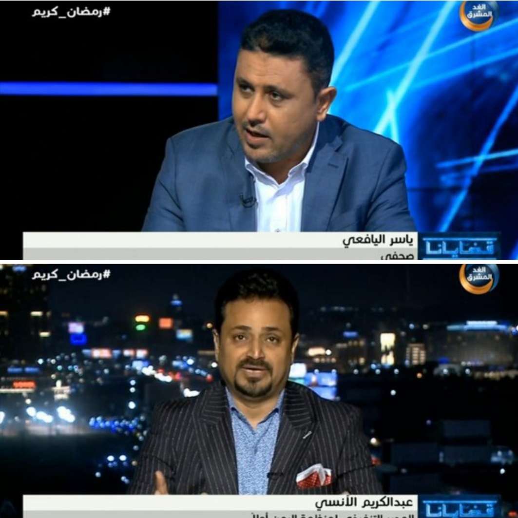 ناقش برنامج قضايانا الذي يقدمه الإعلامي وديع منصور على قناة الغد المشرق مرحلة ما بعد الرئيس هادي وحول التعاطي الإعلامي والواقع الذي يكون عليه،قال المدير التنفيذي لمنظمة اليمن أولًا، عبدالكريم الآنسي في مداخلته يجب اتخاذ إجراءات حقيقية لتوحيد الخطاب الإعلامي بعد مشاورات الرياض وإنشاء غرفة إعلامية موحدة”.