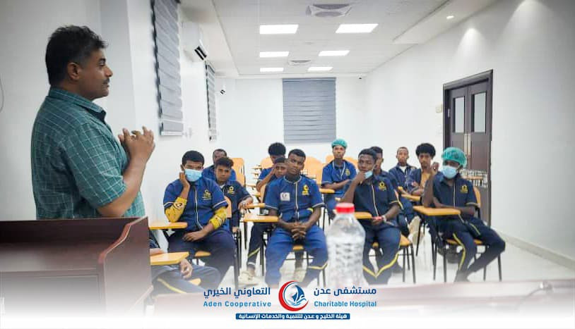 مستشفى عدن التعاوني الخيري ينظّم محاضرة توعوية لعمال النظافة لتعزيز إجراءات السلامة المهنية