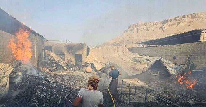 حريق هائل يلتهم ورشة تجارية للأثاث في مديرية تريم بمحافظة حضرموت