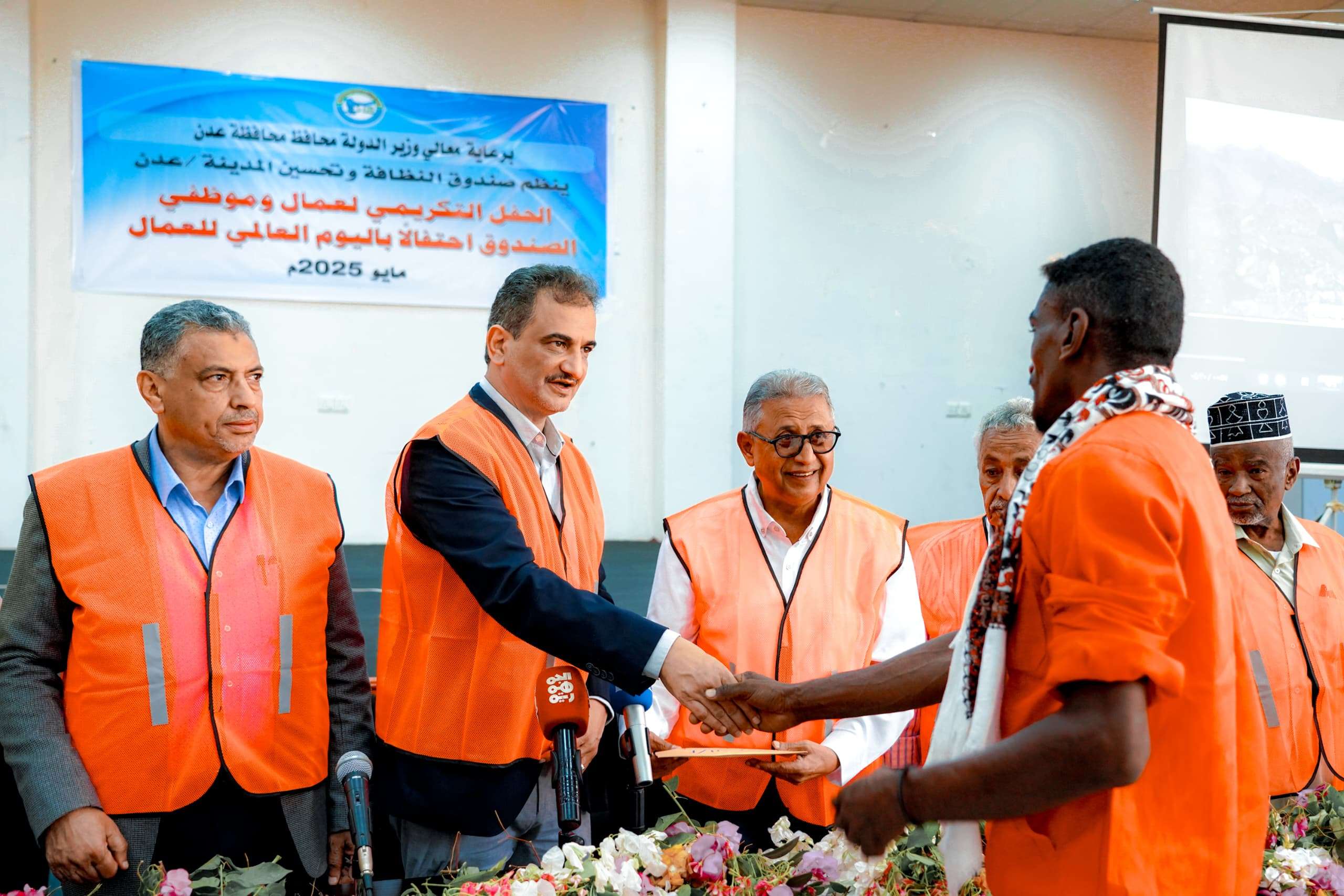 المحافظ لملس يكرّم العمال المبرزين بصندوق النظافة والتحسين في العاصمة عدن بمناسبة عيد العمال