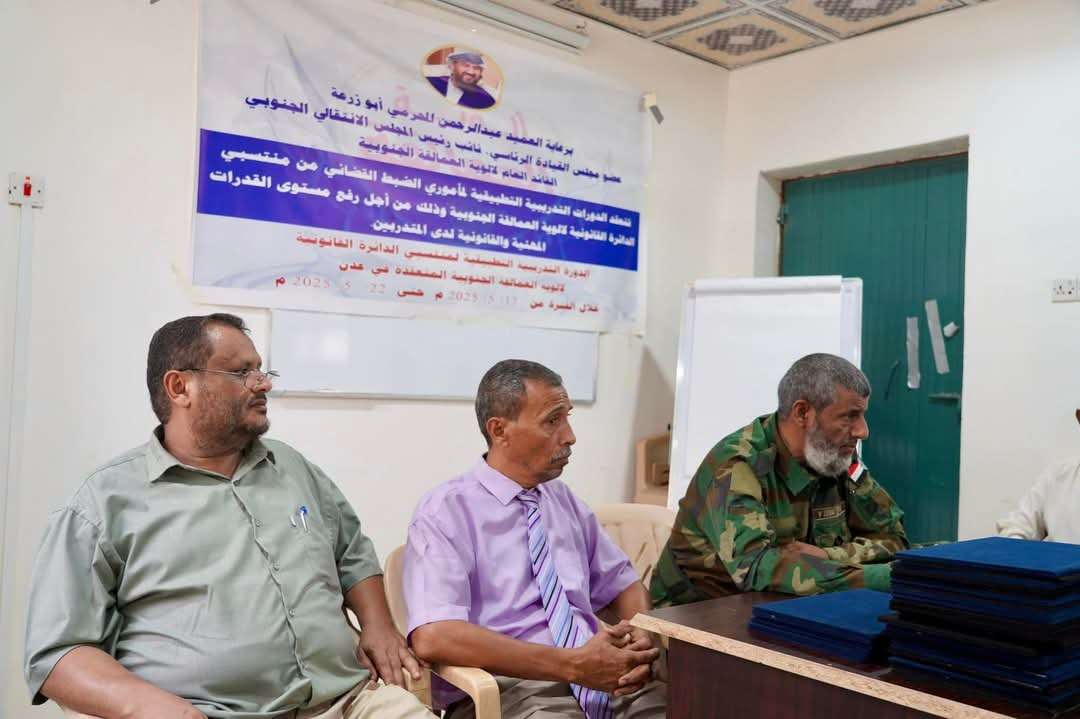 برعاية اللواء المحرمي اختتام الدورة التدريبية لمأموري الضبط القضائي في قوات العمالقة الجنوبية