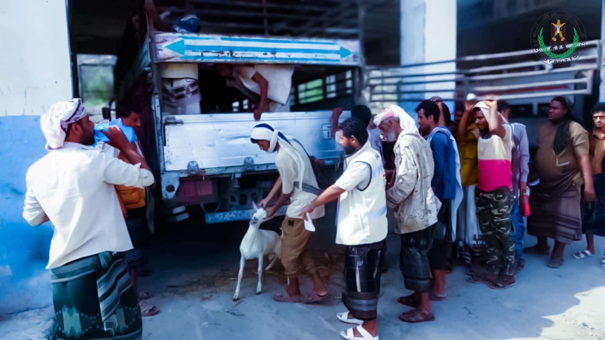 وباشرت الفرق الميدانية التابعة للهيئة توزيع الأضاحي في مقر قيادة قوات الحزام الأمني بالمحافظة، ومديريات المنطقة الوسطى، تحت إشراف القائد العام لقوات الحزام الأمني، العميد محسن بن عبد الله الوالي، وأركان قوات الدعم والإسناد قائد اللواء الثالث دعم وإسناد، العميد نبيل المشوشي.