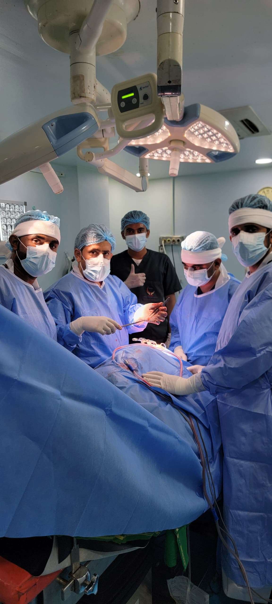 كما تم إجراء (2) عمليات لاستئصال غضاريف قطنية مرتجعة بعد عمليات أجريت سابقًا خارج اليمن، وتعد من أصعب أنواع العمليات، و (5) عمليات لاستئصال انزلاقات غضروفية قطنية مع تثبيت الفقرات.