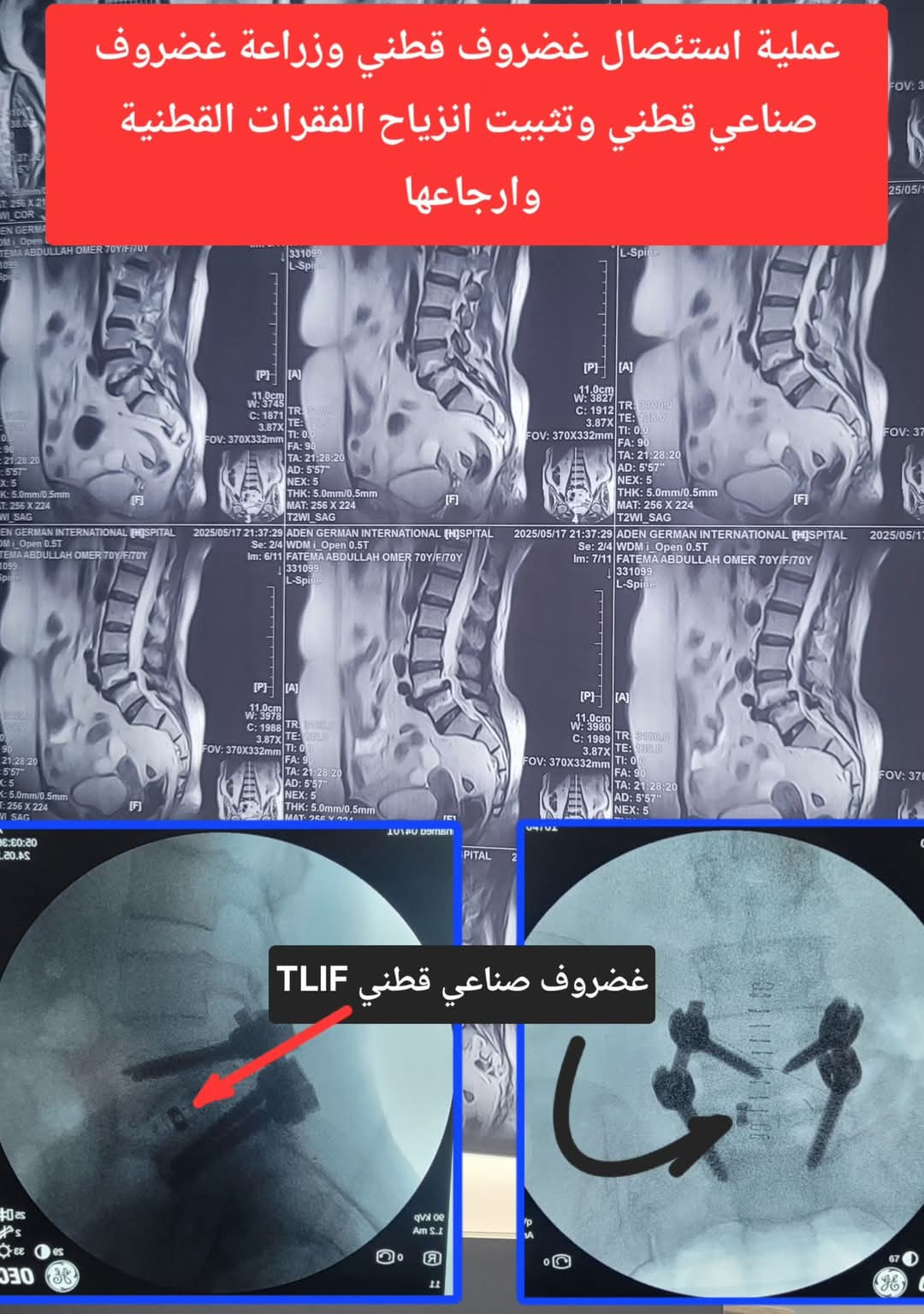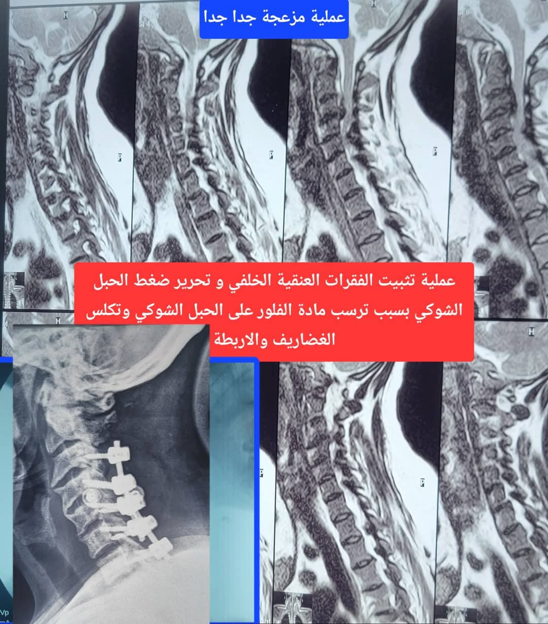 وحالة نادرة جدًا ومعقدة ناتجة عن ترسب مادة الفلور حول الحبل الشوكي (Spinal Fluorosis)، تم التعامل معها بنجاح رغم خطورتها البالغة.