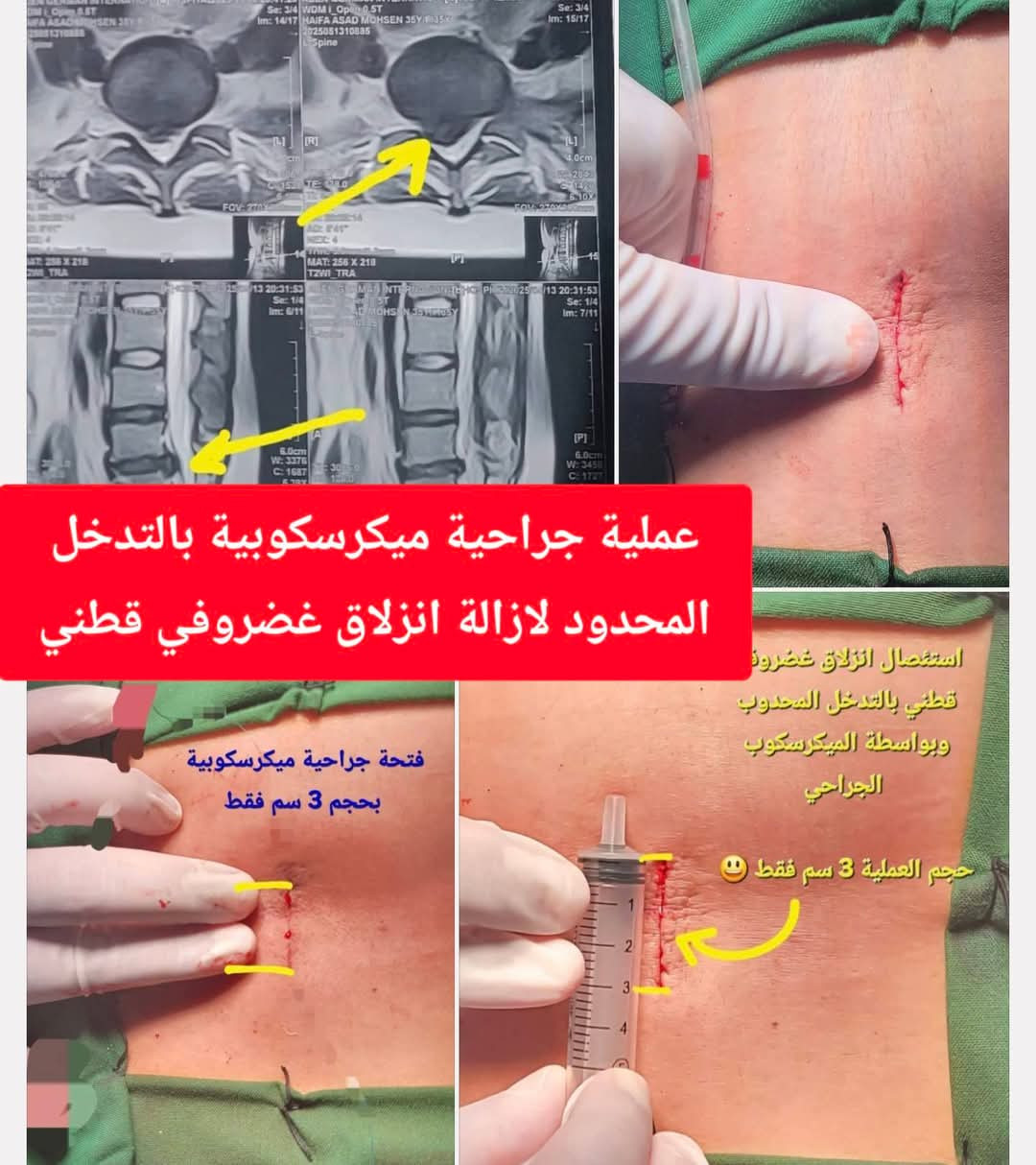كما تم إجراء (4) عمليات استئصال انزلاقات قطنية باستخدام الميكروسكوب والتدخل الجراحي المحدود (Microscopic Microdiscectomy).