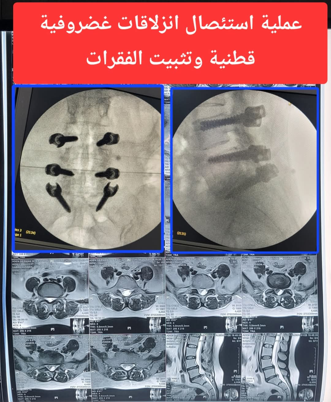 سجلت العيادة التخصصية لجراحة المخ والأعصاب والعمود الفقري في مستشفى عدن الألماني الدولي، إنجازًا طبيًا متميزًا خلال شهر مايو الفائت 2025، حيث تم إجراء (24) عملية جراحية للعمود الفقري والانزلاقات الغضروفية، شملت حالات معقدة ونادرة، جميعها تكللت بالنجاح التام، وفقًا لما أكده الدكتور عمر التركي، استشاري جراحة المخ والأعصاب والعمود الفقري.