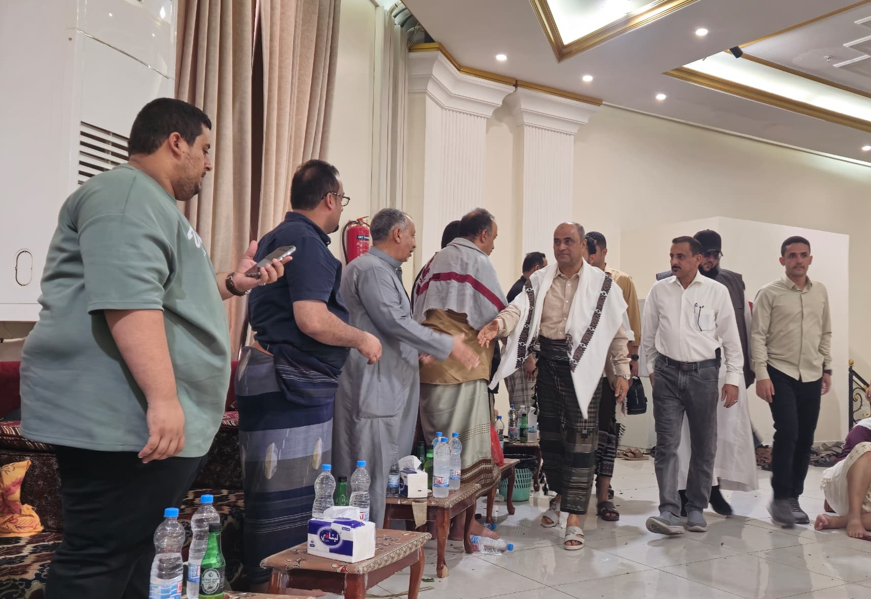 أمين الحوثري وإخوانه يتلقون العزاء في وفاة والدتهم بحضور رسمي واسع في عدن