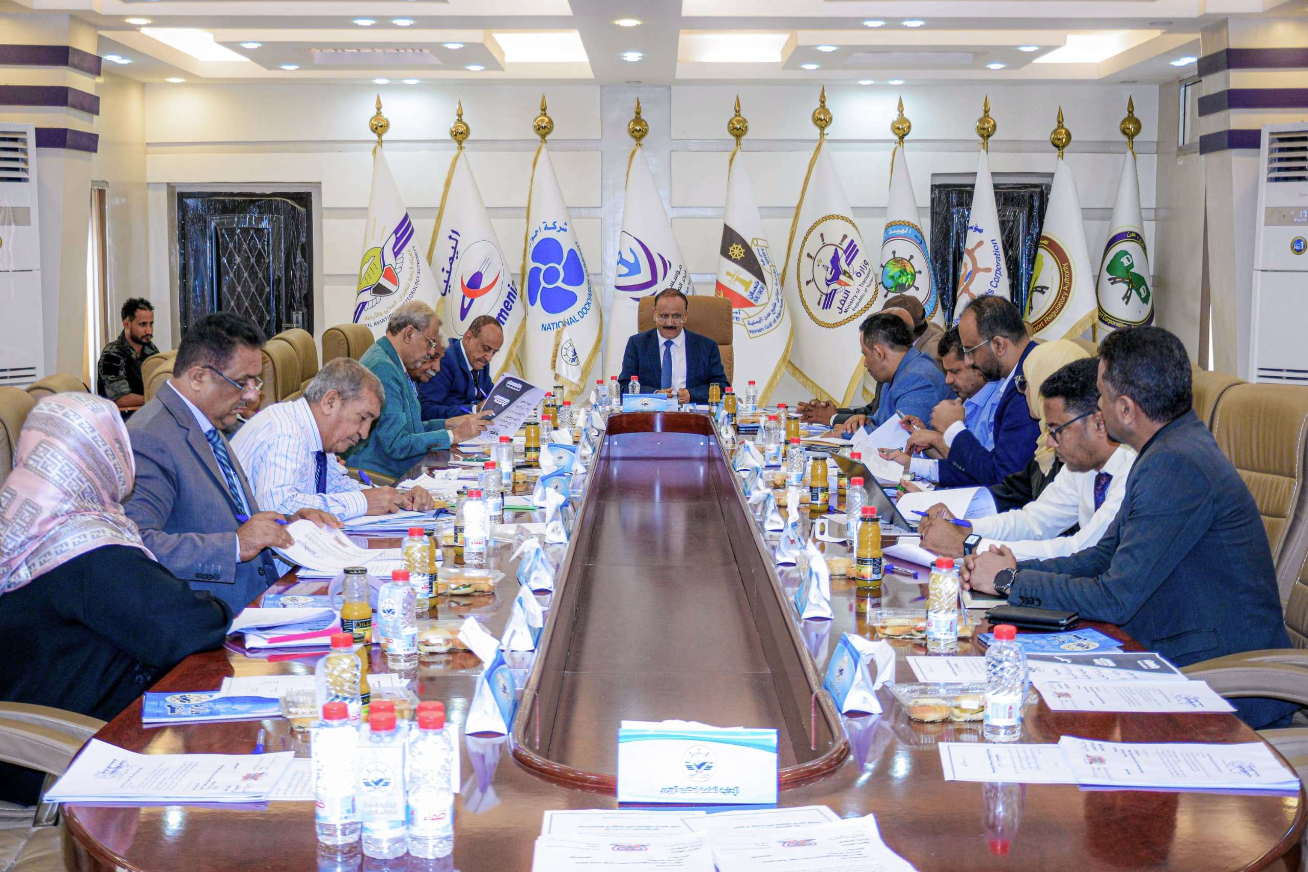 ووقف الاجتماع، الذي ضم وكلاء الوزارة لقطاع الشؤون البحرية والموانئ القبطان علي الصبحي، وقطاع الشؤون المالية والادارية الدكتور الخضر القفيش، وقطاع النقل الجوي المهندس طارق عبده، ورئيس الهيئة العامة للطيران المدني والارصاد الكابتن صالح بن نهيد، والرئيس التنفيذي لمؤسسة موانئ البحر العربي المهندس سالم باسمير، ورئيس الهيئة العامة لتنظيم شؤون النقل البري فارس شعفل، والرئيس التنفيذي للمؤسسة المحلية للنقل البري عبدالباري الحربي، ونائب رئيس الهيئة العامة للشؤون البحرية القبطان يسلم مبارك، ومدير عام مكتب الوزير بسام المفلحي وعدد من المستشارين ومدراء العموم ،امام أجندة عمل الاجتماع المتضمنه متابعة تنفيذ خطة الحكومة لتعزيز التعافي الاقتصادي 2025-2026م وكذا متابعة تنفيذ مصفوفة الأولويات الحكومية العاجلة للمائة يوم القادمة إلى جانب مستوى التزام الهيئات والمؤسسات والشركات بوضع الموازنات السنوية والحسابات الختامية والتقارير السنوية للأنجاز .
