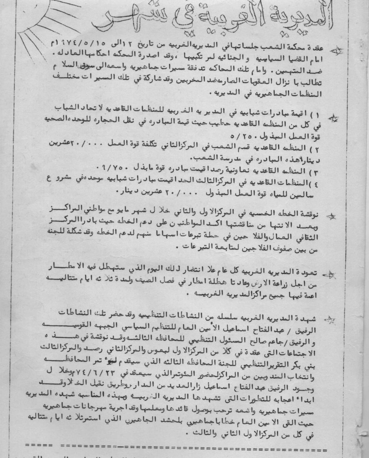 المناسبة: زيارة الأمين العام للتنظيم السياسي للجبهة القومية، عبدالفتاح إسماعيل، إلى مديرية يافع، وكانت تسمى حينها المديرية الغربية من المحافظة الثالثة (أبين حالياً).