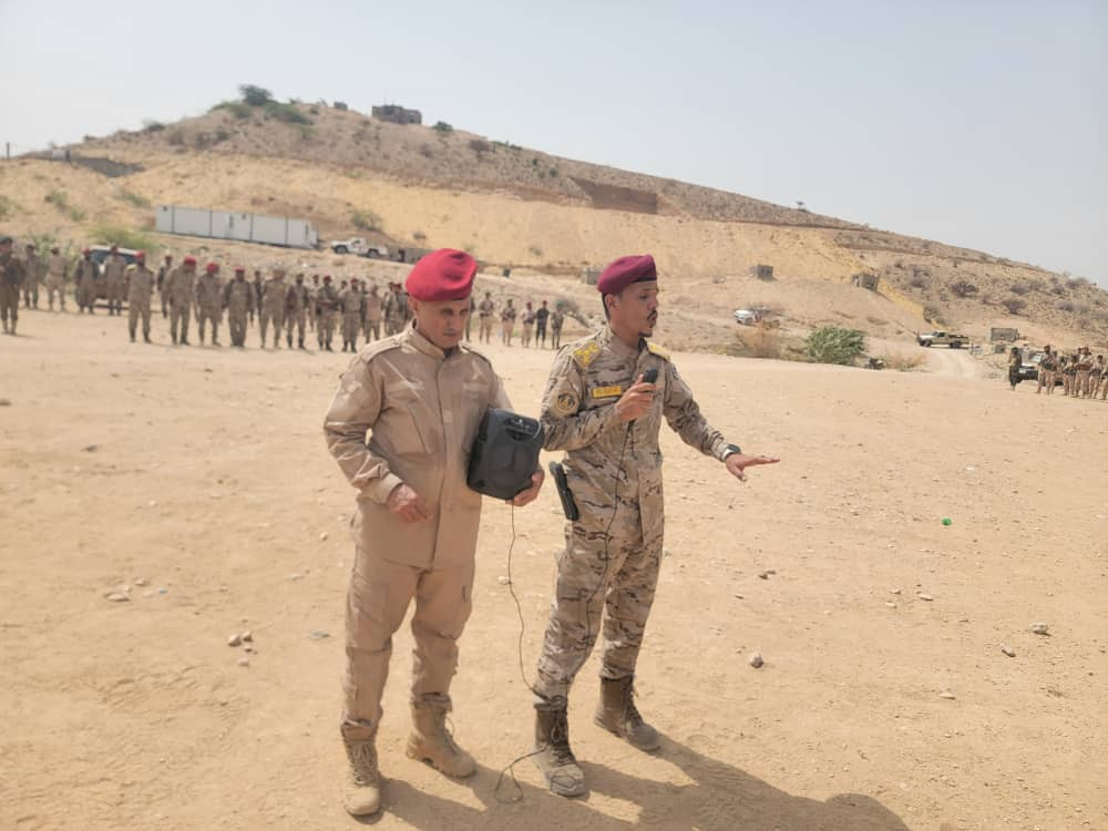 ضمن عمليات النزول الميداني المتواصل لتفقد جاهزية الوية الدعم والاسناد القتالية في محور ابين نفذ العميد نصر عاطف اليافعي قائد الوية الدعم والاسناد قائد اللواء الاول دعم واسناد عملية نزول ميداني لتفقد جاهزية اللواء الاول دعم واسناد القتالية في مديرية المحفد بمحافظة ابين