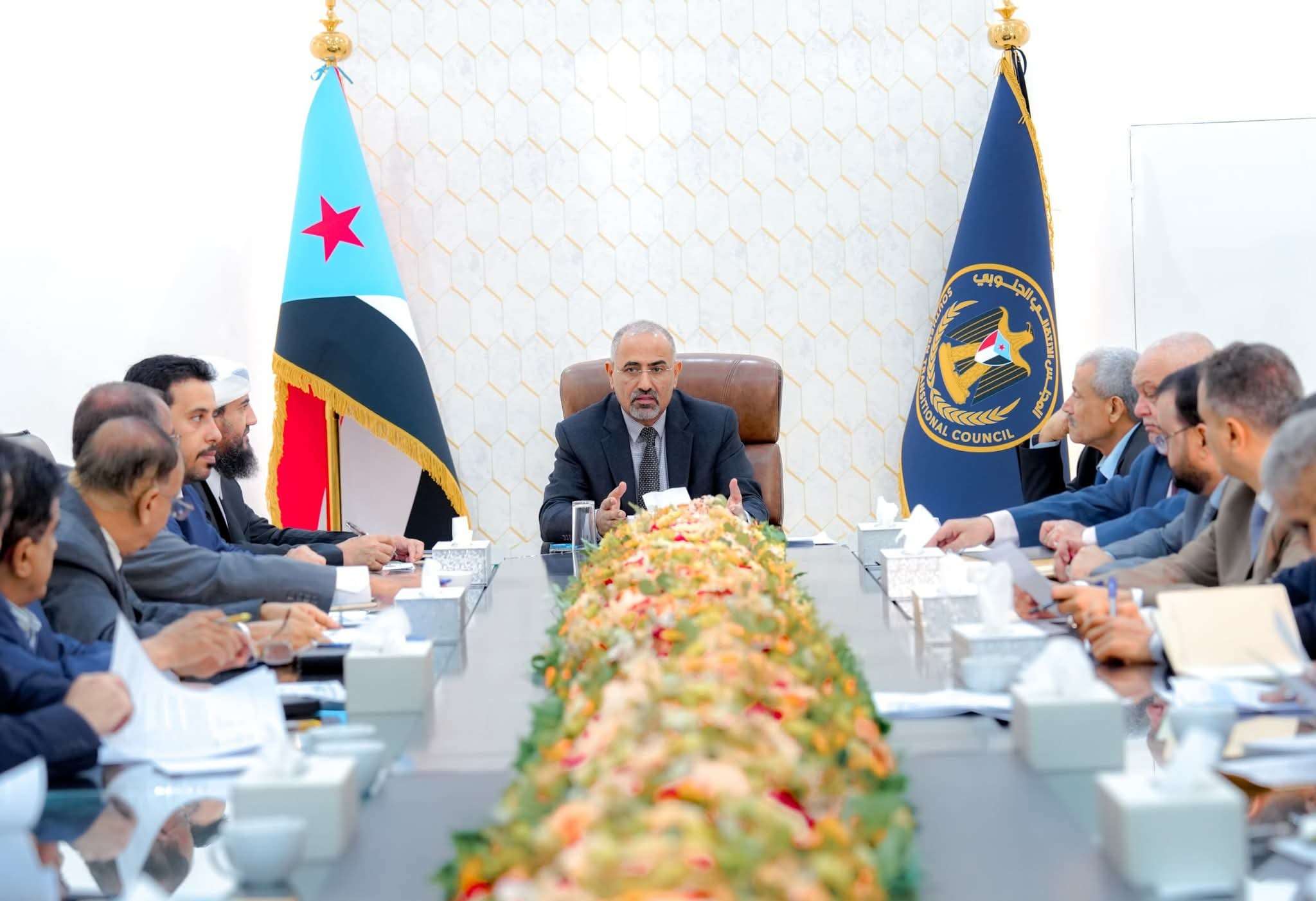 واستهل الرئيس الزُبيدي الاجتماع بكلمة أكد فيها أهمية مضاعفة الجهود في هذه المرحلة الحساسة التي تمر بها البلاد، مستعرضًا في سياق حديثه ملخصًا لأبرز مخرجات اجتماع اللجنة العليا للموارد السيادية والمحلية، وعلى وجه الخصوص ما يتصل بجهود تعزيز الإيرادات العامة، وتحسين آليات التحصيل والتوريد إلى البنك المركزي في العاصمة عدن، وتوجيه الوزارات المختصة بتأمين وقود لمحطات توليد الكهرباء.