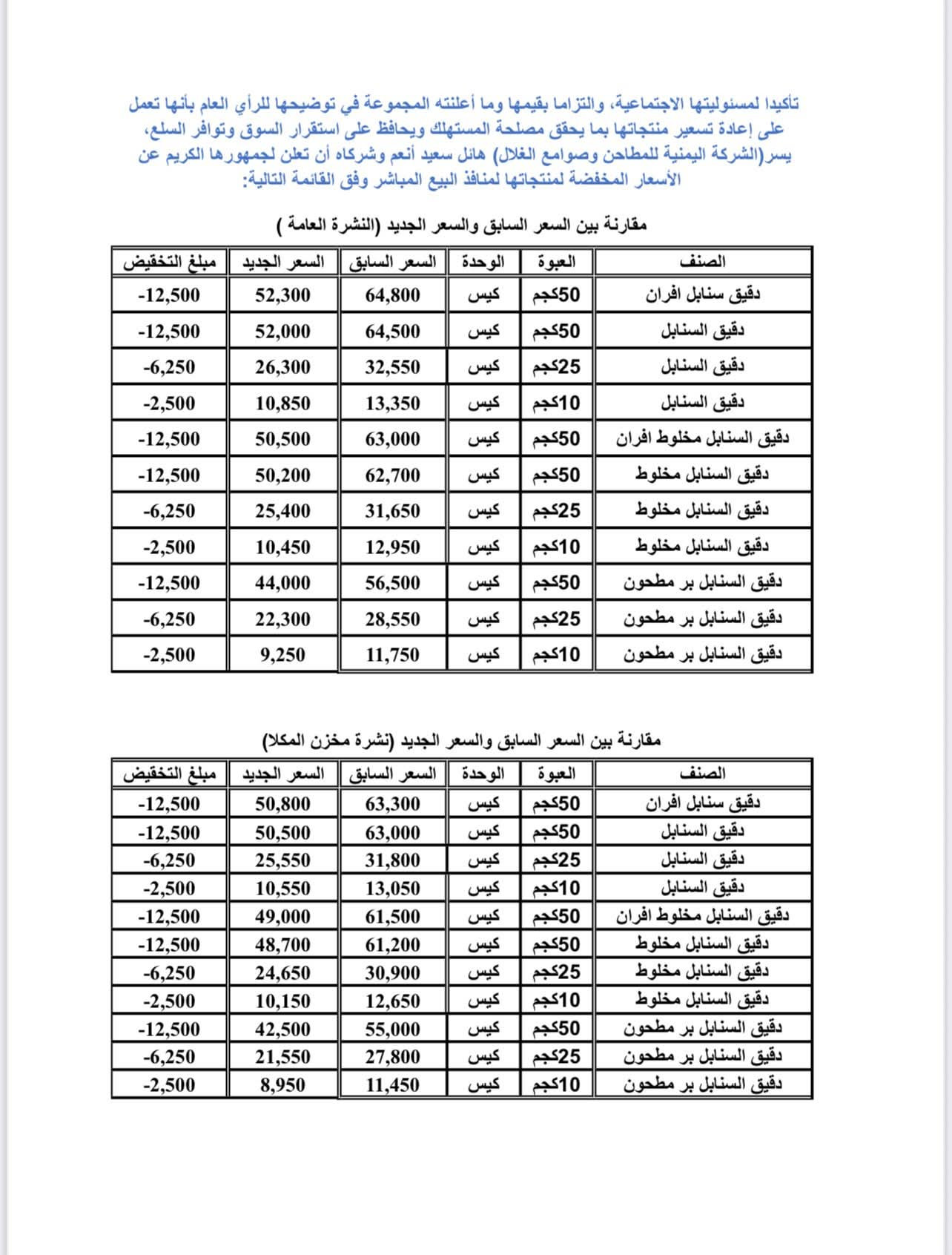أعلنت مجموعة هائل سعيد أنعم وشركاه، إحدى أكبر المجموعات التجارية والصناعية في اليمن، قائمة الأسعار الجديدة والمخفضة لعدد من منتجاتها الغذائية والاستهلاكية، وذلك استجابة لتحسن سعر صرف العملة المحلية وحرصاً على تخفيف الأعباء عن المواطنين.