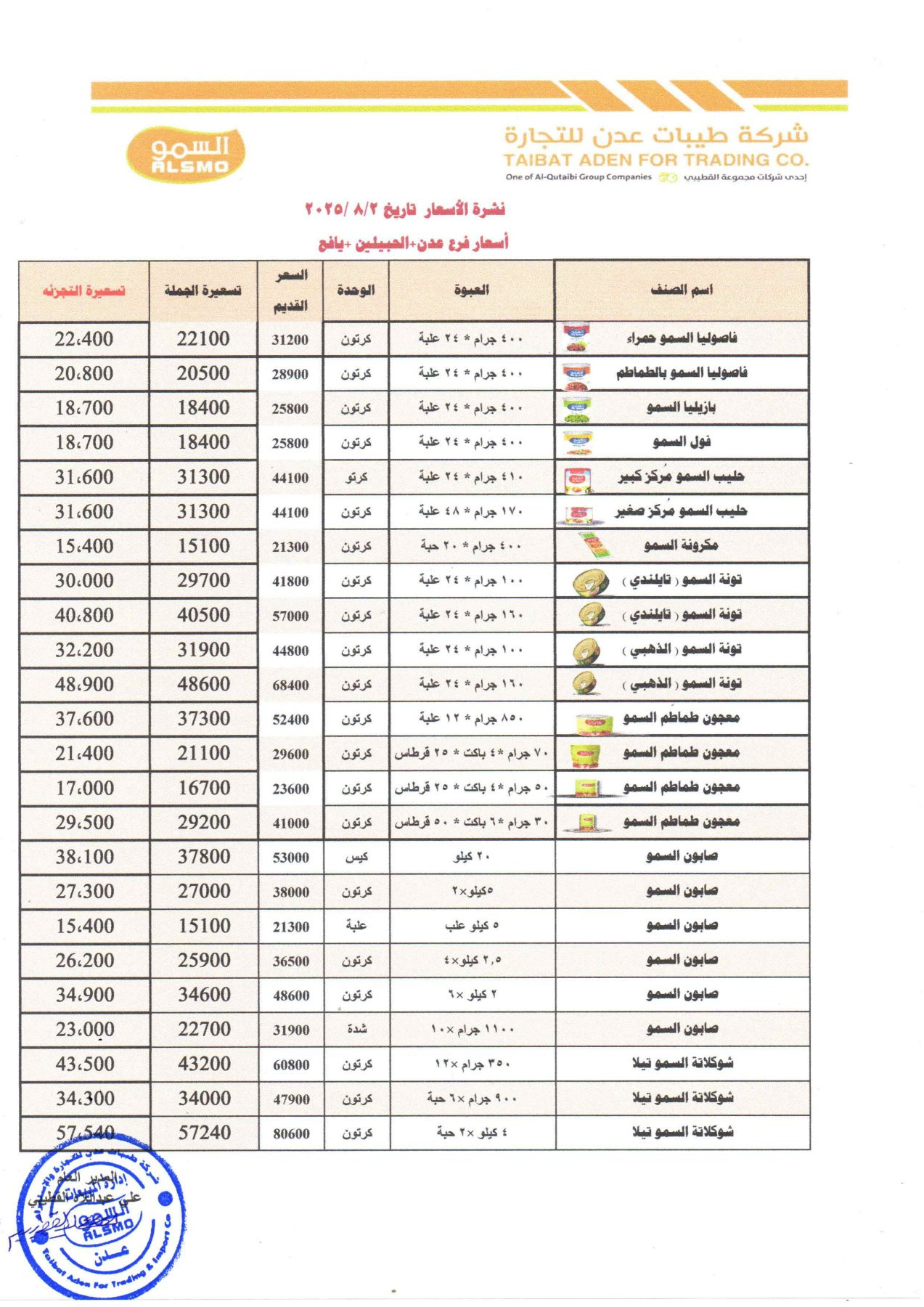 شركة طيبات عدن "السمو" تنشر قائمة أسعار جديدة لمنتجاتتها بعد التخفيض