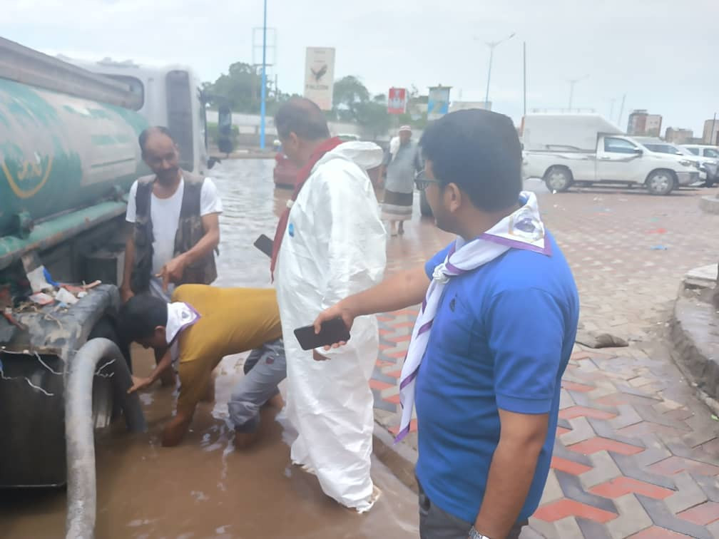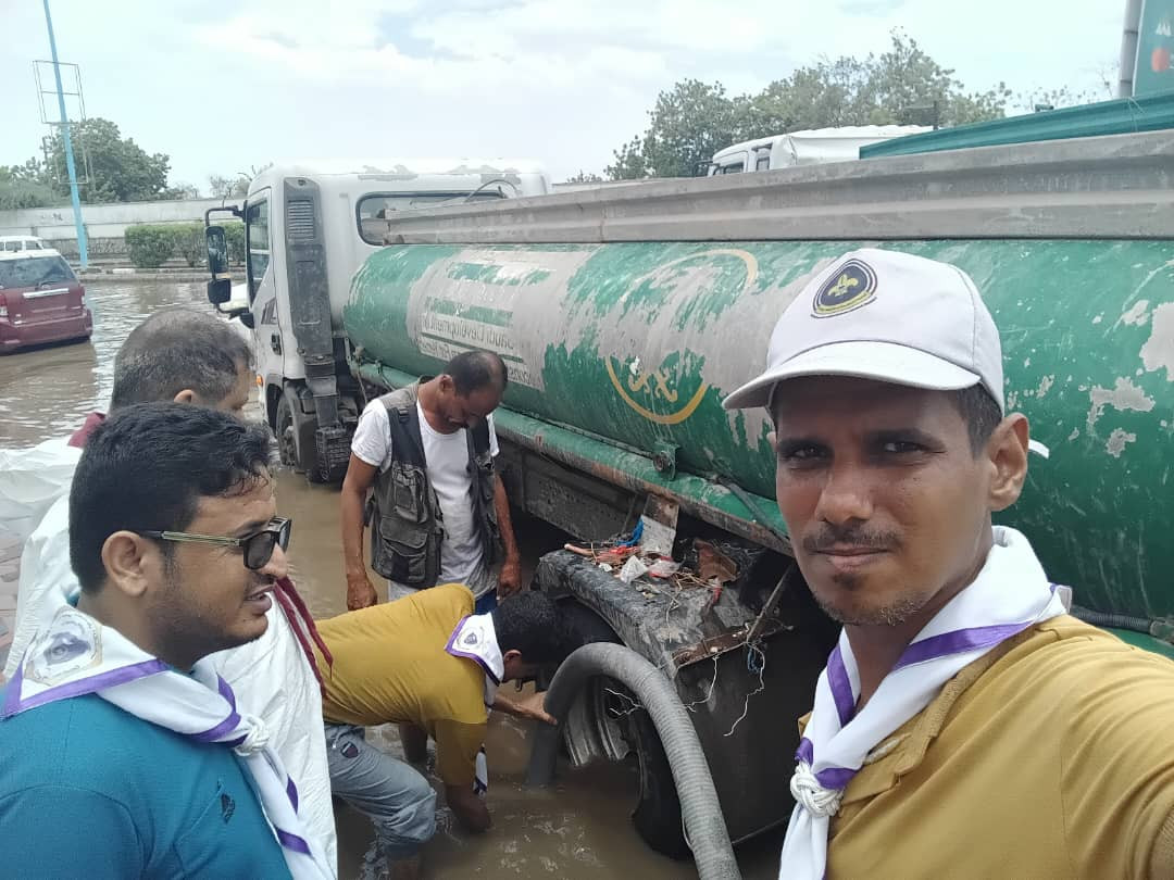وتوزع أفراد الكشافة في أحياء كريتر، المعلا، الشيخ عثمان، والمنصورة، دار سعد، للمساهمة في فتح ممرات تصريف مياه الأمطار، وإغاثة الأسر المتضررة، إضافة إلى تنفيذ حملات توعية بمخاطر السيول وطرق الوقاية منها.