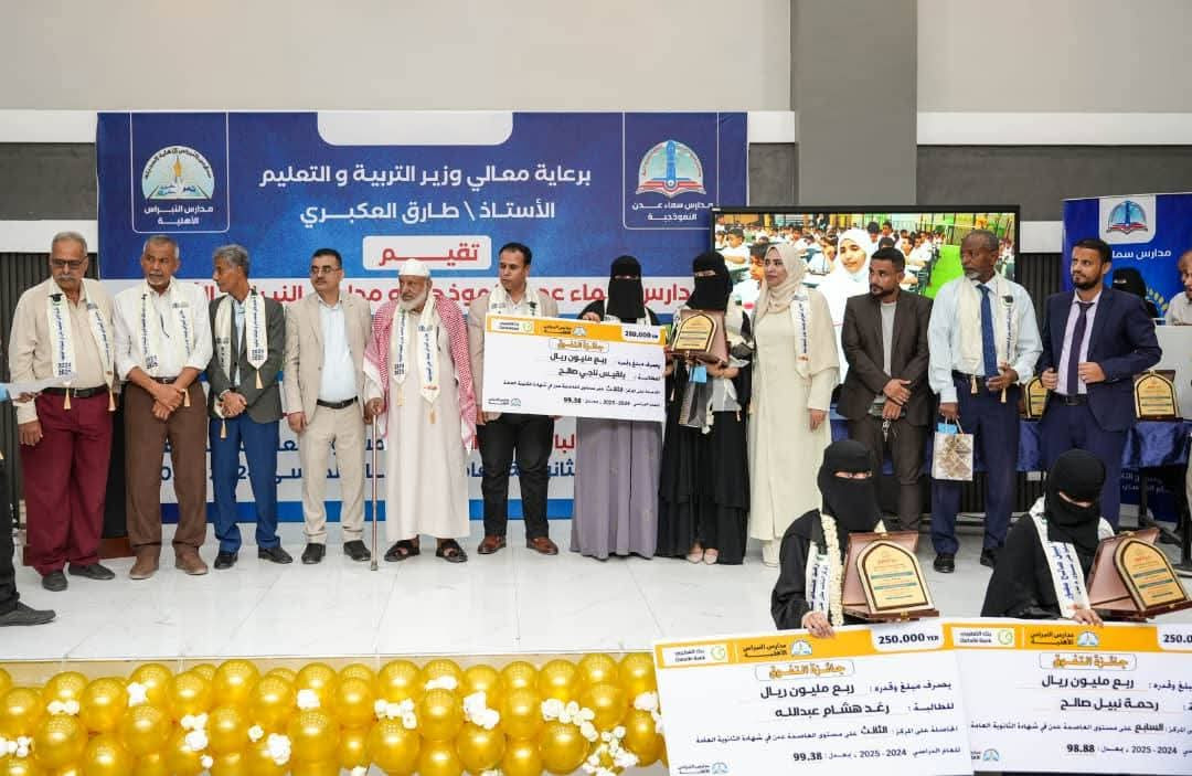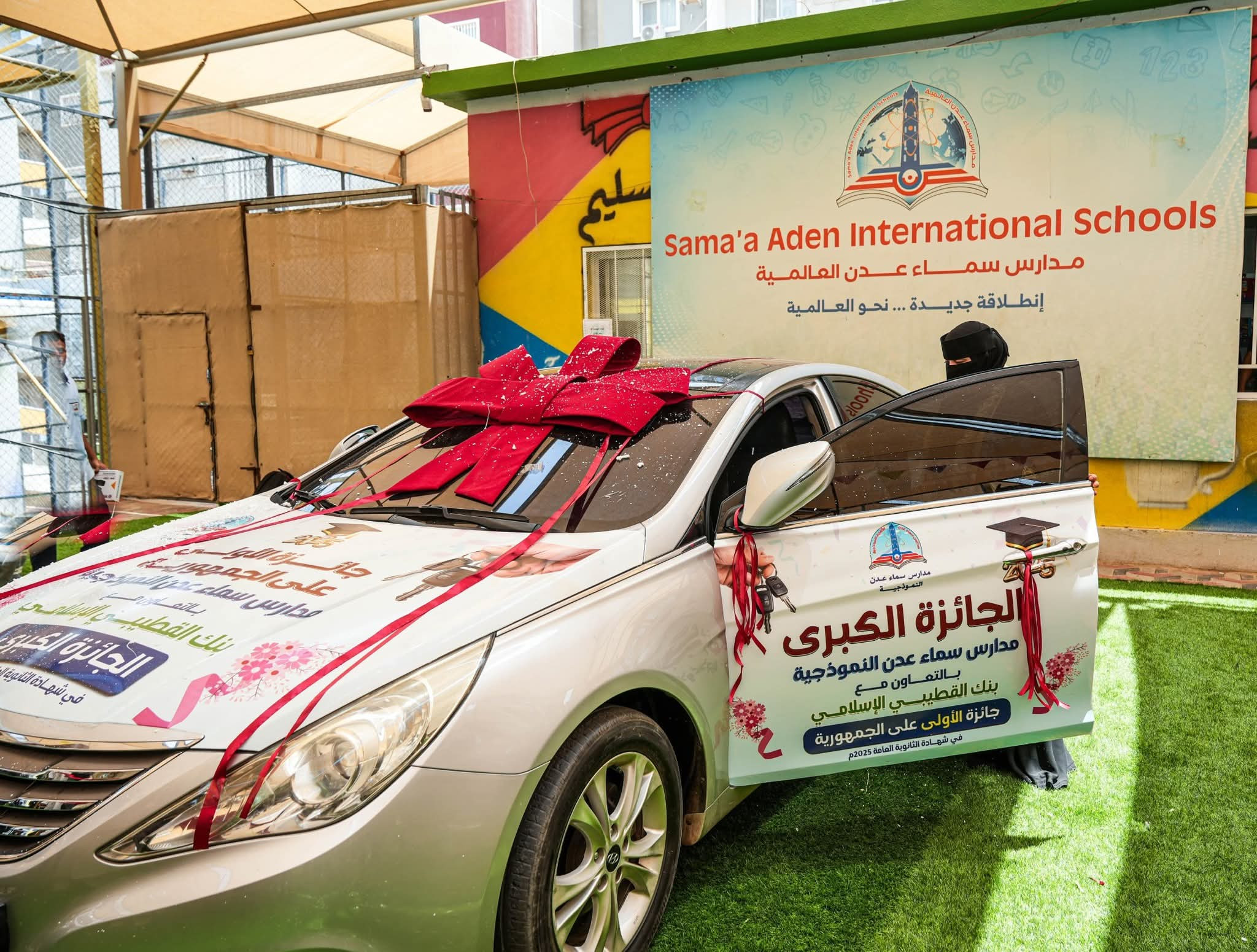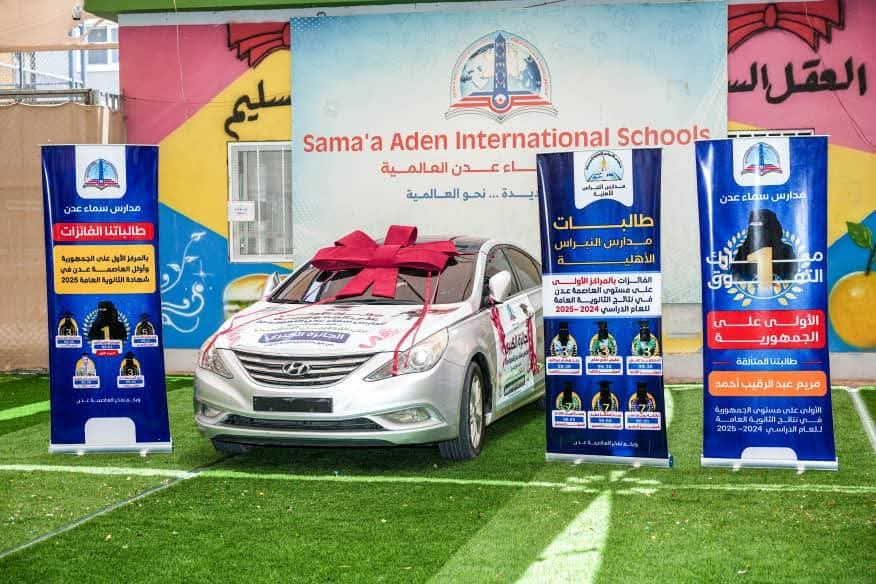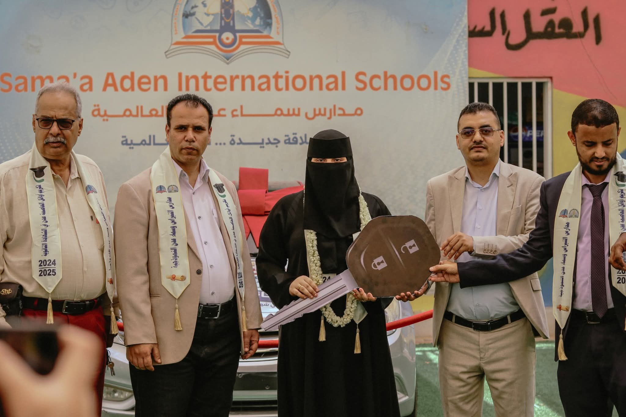 وتوّجت الاحتفالية بتكريم الطالبة مريم عبدالرقيب أحمد علي، الحاصلة على المركز الأول على مستوى الجمهورية، بسيارة سوناتا، في لفته تعكس التقدير العميق لقيمة الجد والاجتهاد، إلى جانب تكريم 11 طالبة متفوقة أخرى من مدرستي سماء عدن والنبراس اللواتي أحرزن مراكز متقدمة على مستوى محافظة عدن، عبر جوائز نوعية ودروع تحفيزية.