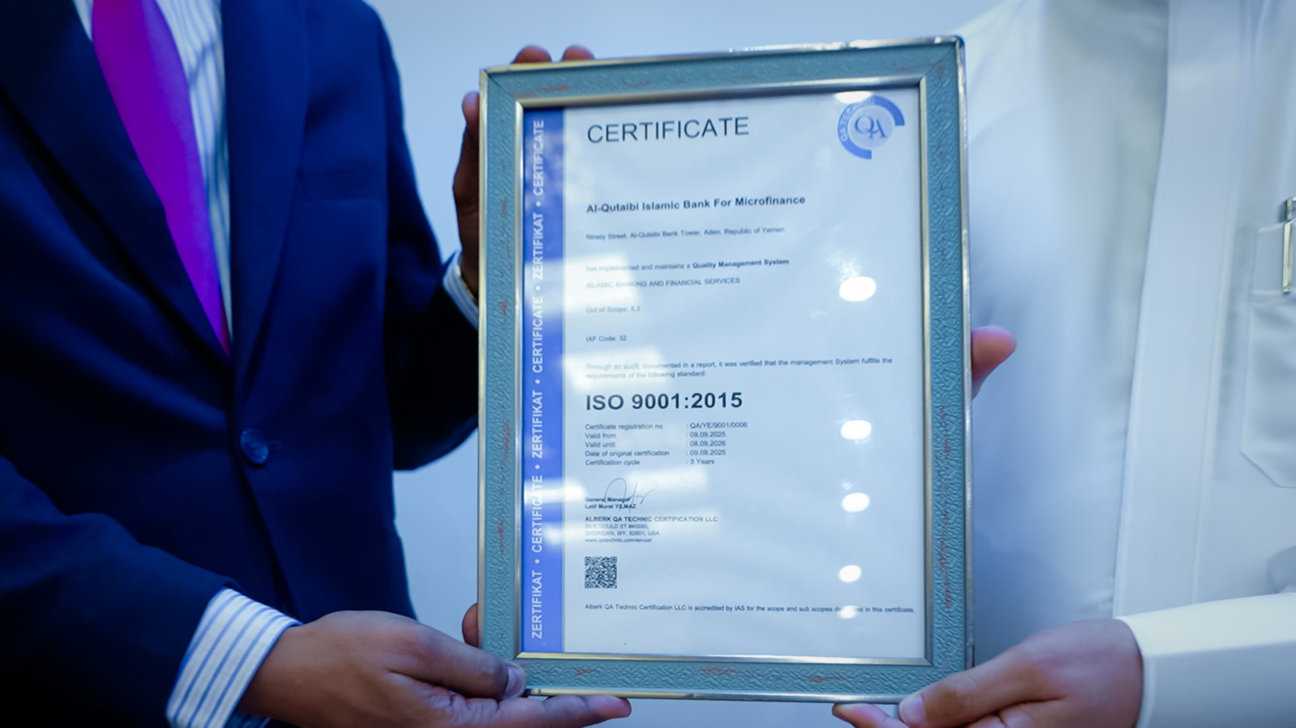 بنك القطيبي الإسلامي للتمويل الأصغر يحصل على شهادة الجودة العالمية ISO 9001:2015