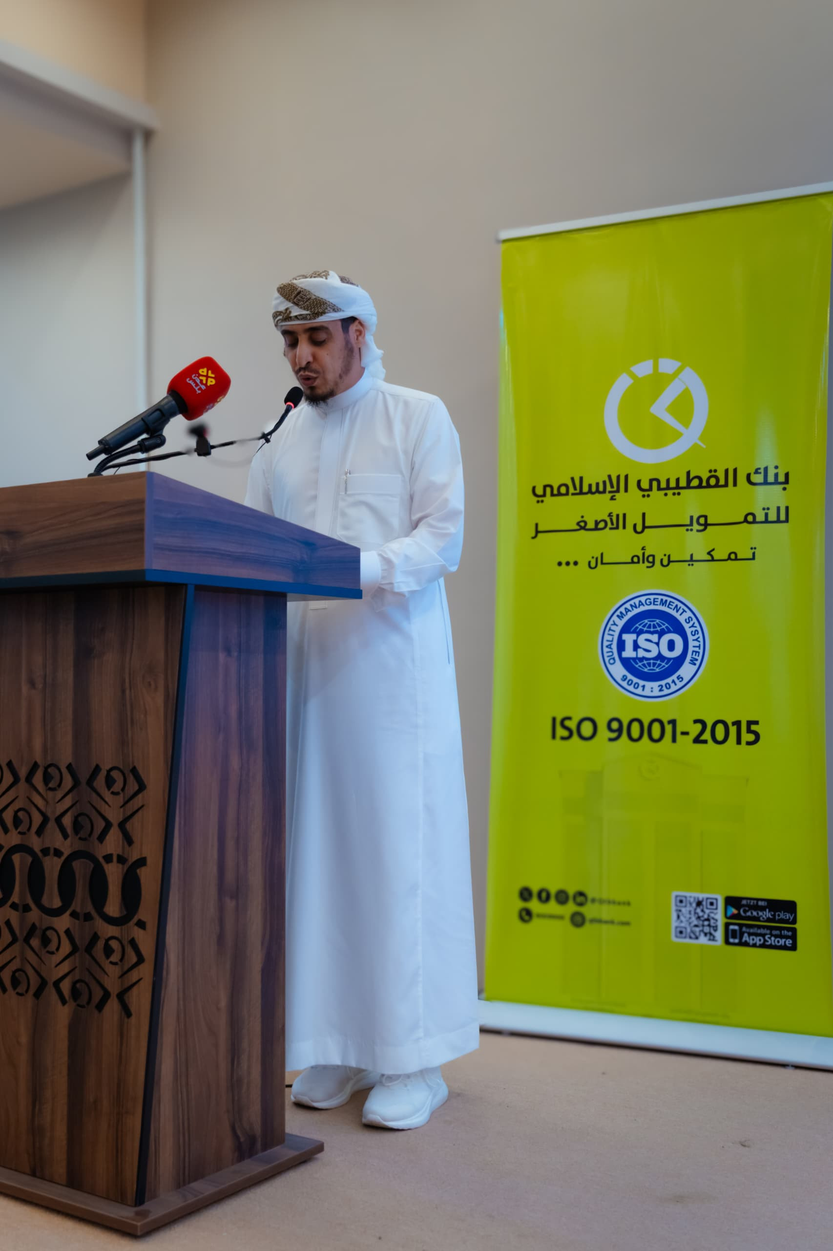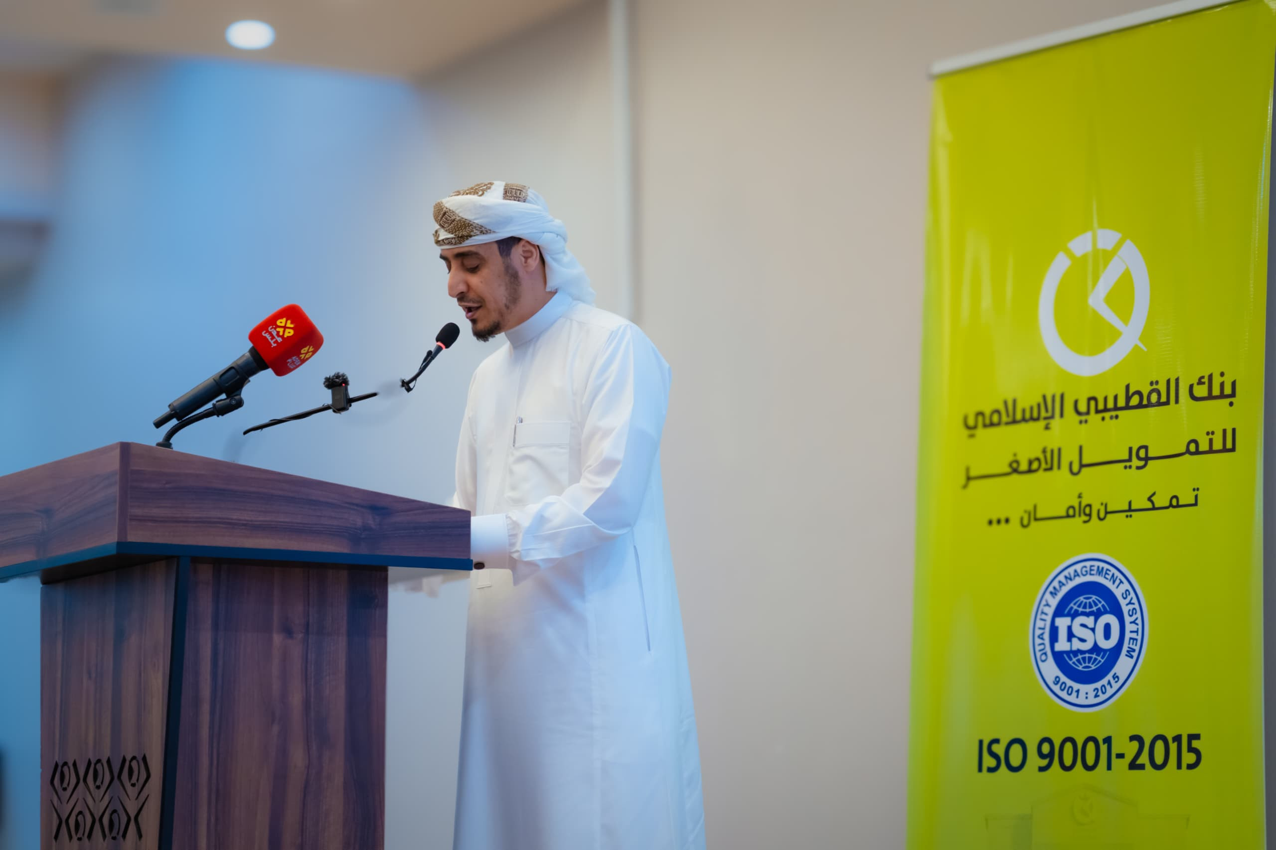 وفي كلمته خلال حفل التكريم، عبّر الأستاذ عبدالسلام الوردي، الرئيس التنفيذي للبنك، عن فخره واعتزازه بهذا الإنجاز قائلاً: "إن حصولنا على شهادة الجودة ISO 9001:2015 يمثل محطة تاريخية في مسيرة بنك القطيبي الإسلامي للتمويل الأصغر، هذا النجاح لم يكن ليتحقق لولا تفاني كوادرنا الذين جسّدوا رؤيتنا في تقديم خدمات مالية أصغر بمعايير عالمية تستند إلى القيم الإسلامية والشفافية. اليوم نؤكد أن الجودة بالنسبة لنا ليست مجرد شهادة نعتز بها، بل هي ثقافة راسخة نمارسها يوميًا، ونعمل على تطويرها باستمرار لنلبي تطلعات عملائنا ونواكب أحدث الممارسات العالمية."