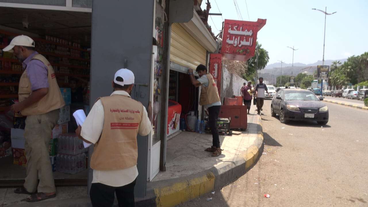 نيابة الصناعة والتجارة بعدن تغلق 31 منشأة تجارية مخالفة في خورمكسر