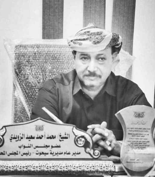 بقلوب مؤمنة بقضاء الله وقدره، وببالغ الحزن والأسى، بعث معالي وزير الزراعة والري والثروة السمكية، اللواء سالم عبدالله السقطري، برقية عزاء ومواساة إلى الأستاذ و الشيخ / محمد علي ياسر محافظ محافظة المهرة – رئيس المجلس المحلي، وإلى أسرة الفقيد وقبيلته، وكافة أبناء المهرة، في وفاة الشيخ/ محمد الزويدي المهري، عضو مجلس النواب وعضو هيئة التشاور والمصالحة.
