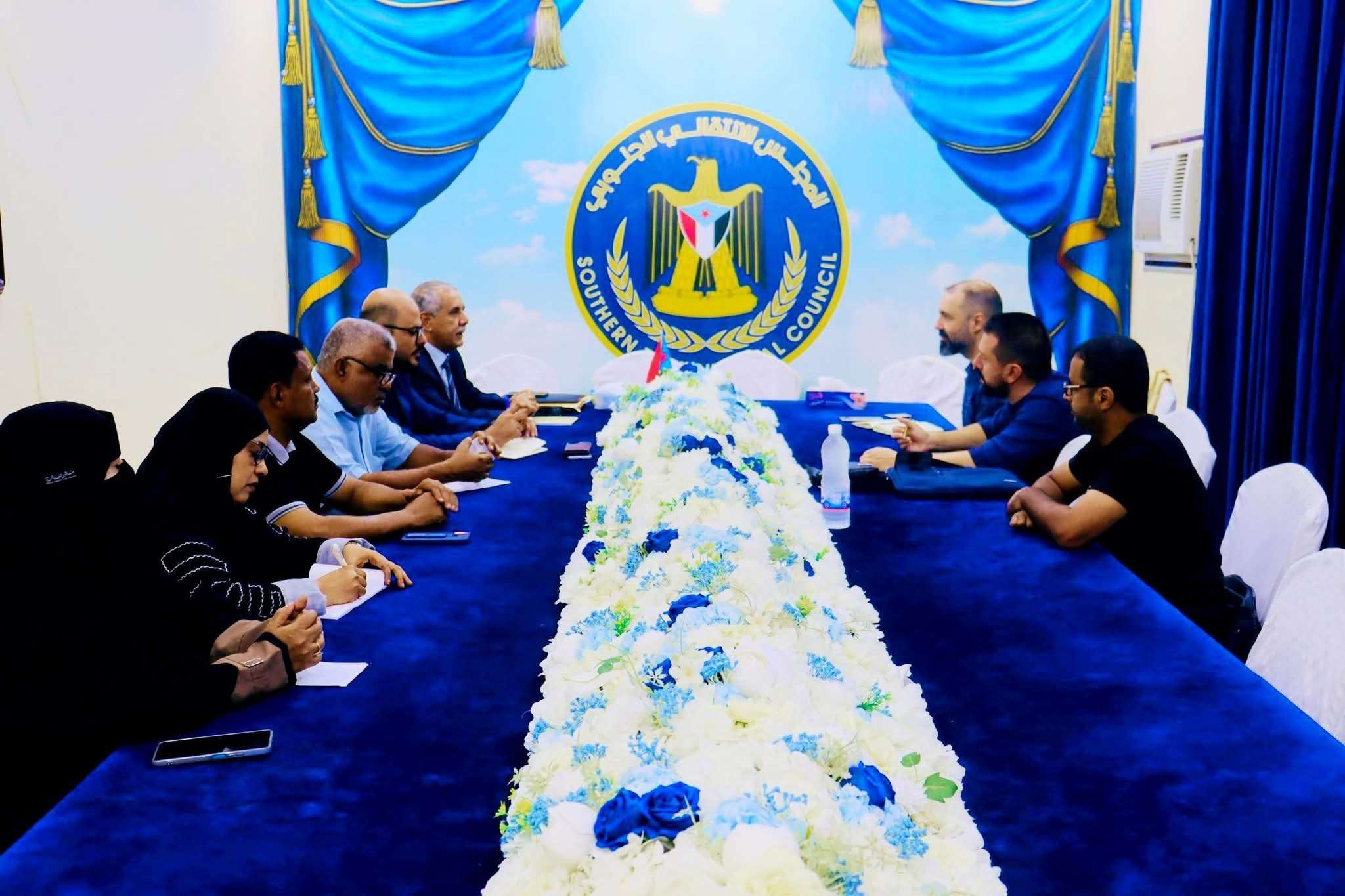 بحث فريق التوجيه والرقابة الرئاسي برئاسة عضو هيئة رئاسة المجلس الانتقالي الجنوبي المحامي يحيى غالب الشعيبي، بمعية نائب رئيس الهيئة التنفيذية للقيادة المحلية للمجلس الانتقالي الجنوبي بمحافظة حضرموت الأستاذ علي أحمد الجفري، اليوم الأربعاء بمدينة المكلا، مع وفد المعهد الأوروبي للسلام برئاسة السيد ثانوس بيتوريس، المستشار الأول ومسؤول ملف اليمن في المعهد، مستجدات الأوضاع في حضرموت وجهود إحلال السلام في الجنوب.