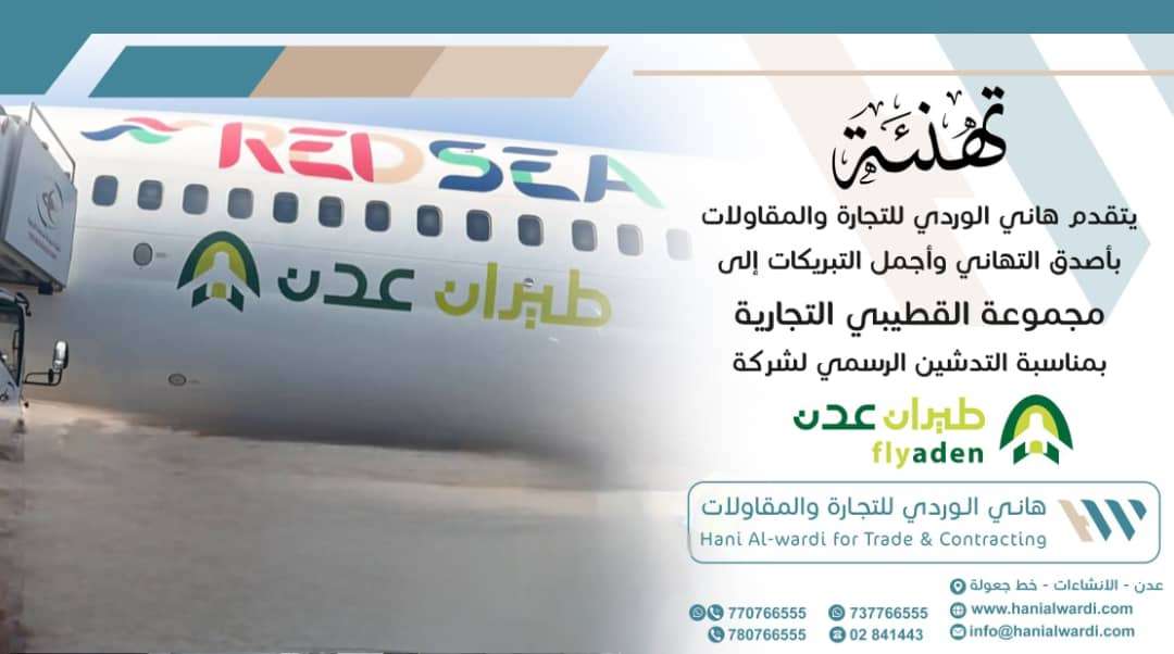 شركة هاني الوردي للتجارة والمقاولات تهنئ مجموعة القطيبي التجارية بتدشين طيران عدن
