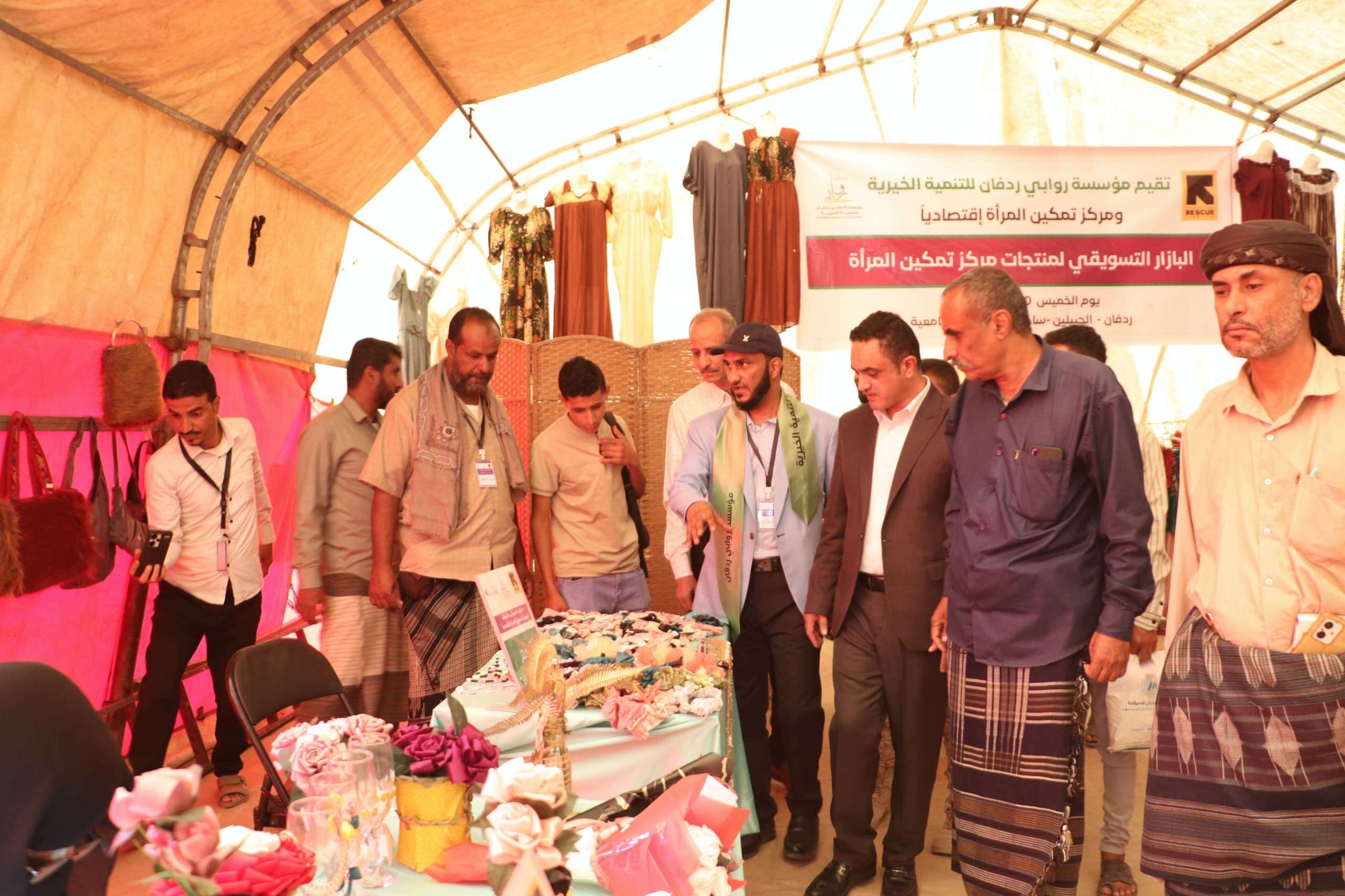 دشن مدير عام مديرية ردفان الشيخ فضل القطيبي ومدير عام مكتب الشؤون الاجتماعية والعمل بمحافظة لحج الاستاذ صائب عبدالعزيز ومدير عام مكتب التعليم الفني والتدريب المهني المهندس ايمن الشحيري ومحمود عبدالكريم رئيس تنفيذية انتقالي مديرية ردفان البازار التسويقي لمنتجات مركز تمكين المرأة اقتصاديا الذي تقيمه مؤسسة روابي ردفان للتنمية الخيرية.