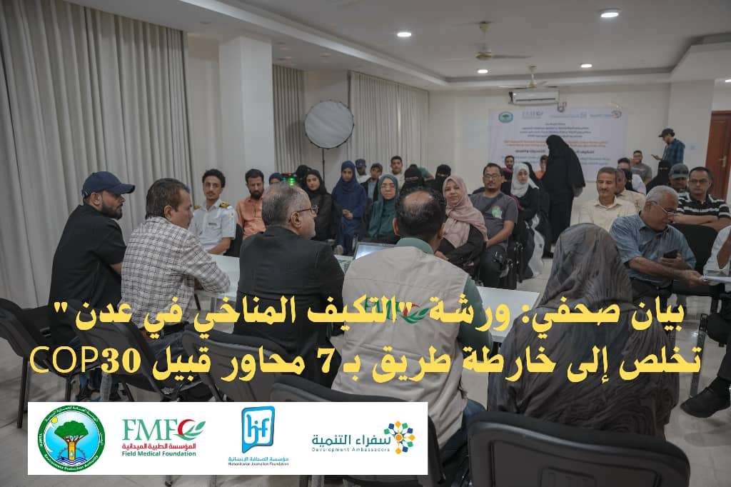 بيان صحفي: ورشة "التكيف المناخي في عدن" تخلص إلى خارطة طريق بـ 7 محاور قبيل (COP30)