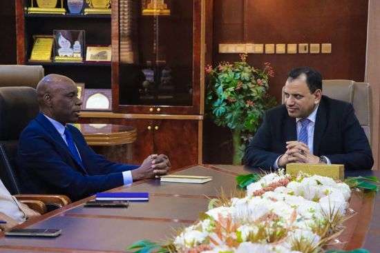 رحب سالم السقطري، وزير الزراعة والري والثروة السمكية، بالدكتور آدم ياو، القائم بأعمال الممثل المقيم لمنظمة الأغذية والزراعة "فاو"، اليوم في العاصمة عدن.