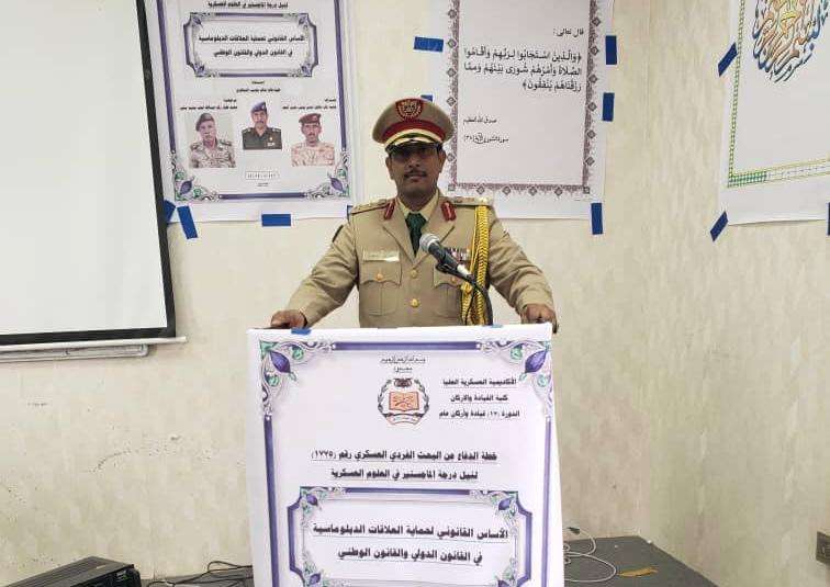 وناقش العقيد الشطحي بحثه الموسوم بـ: "الأساس القانوني لحماية العلاقات الدبلوماسية في القانون الدولي والقانون الوطني".