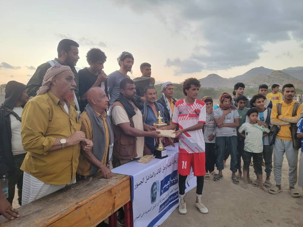 وفي ختام المُباراة التي أدارها طاقم تحكيمي مكون من علي صالح وأكرم الجرو و علي حردان ، قام الأمين العام لنادي فحمان مودية الكابتن ياسر جازع وبحضور عدد من الشخصيات الرياضية والاجتماعية والتربوية والاعلامية بتسليم الكأس للبطل ، وكذا تسليم الجوائز المالية المرصودة للبطل والوصيف والمقدمة من الراعي العميد محسن الوالي القائد العام لقوات الحزام الأمني.
