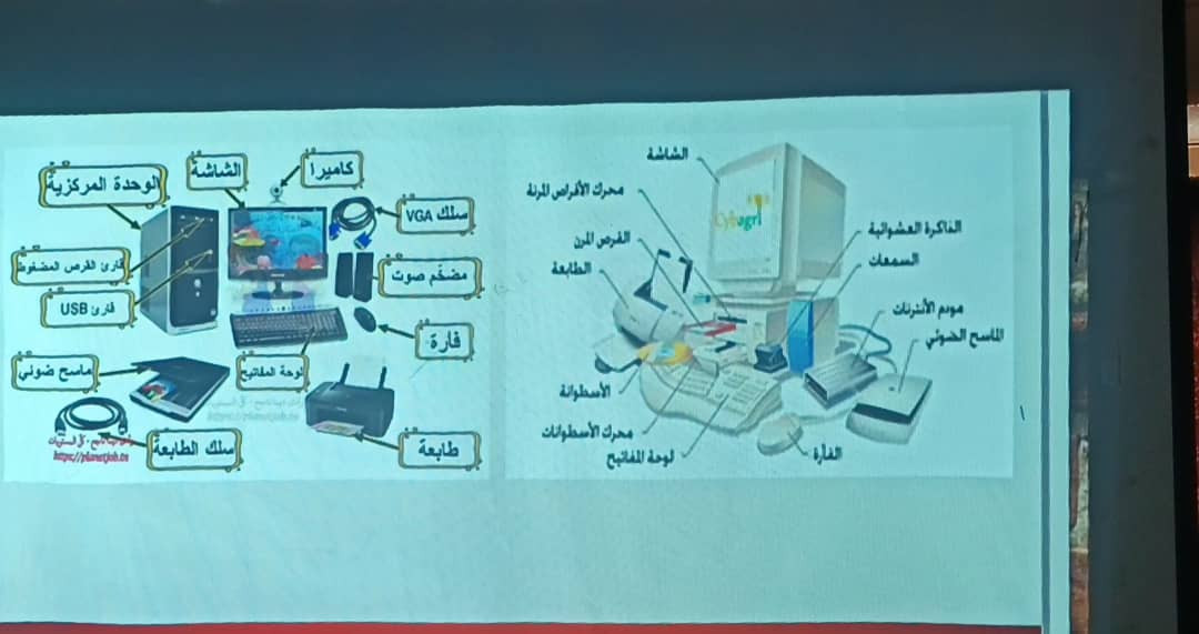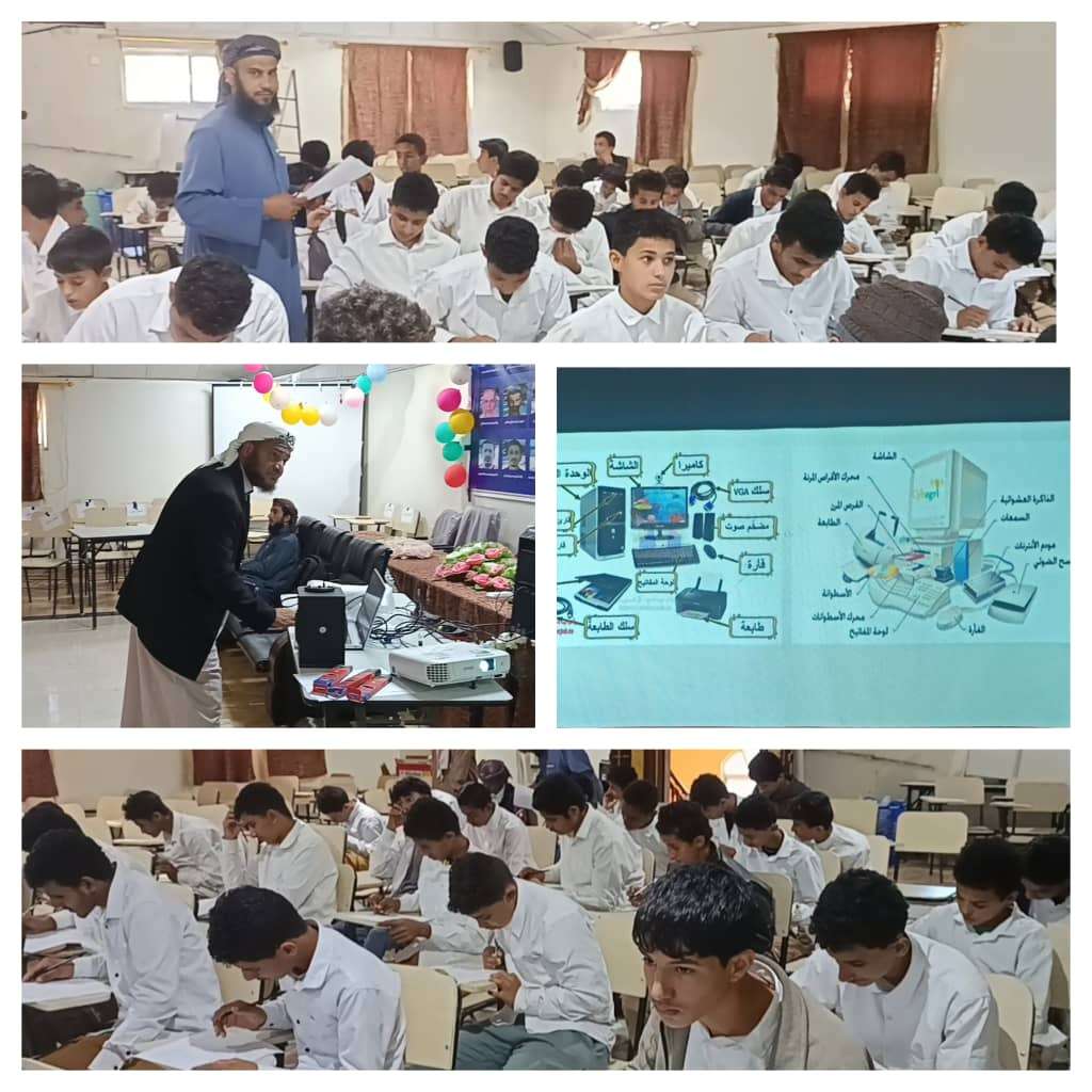 بعد ذلك قدم الدكتور فهمي عبادي العمودي للطلاب شرحاً تفصيلياً حول جهاز الحاسوب وأساسياته، واستعرض عبر شاشة العرض «البروجكتر» مجموعة من المعلومات التقنية التي تعزز فهم الطلاب لمجالات الحوسبة وتطبيقاتها.