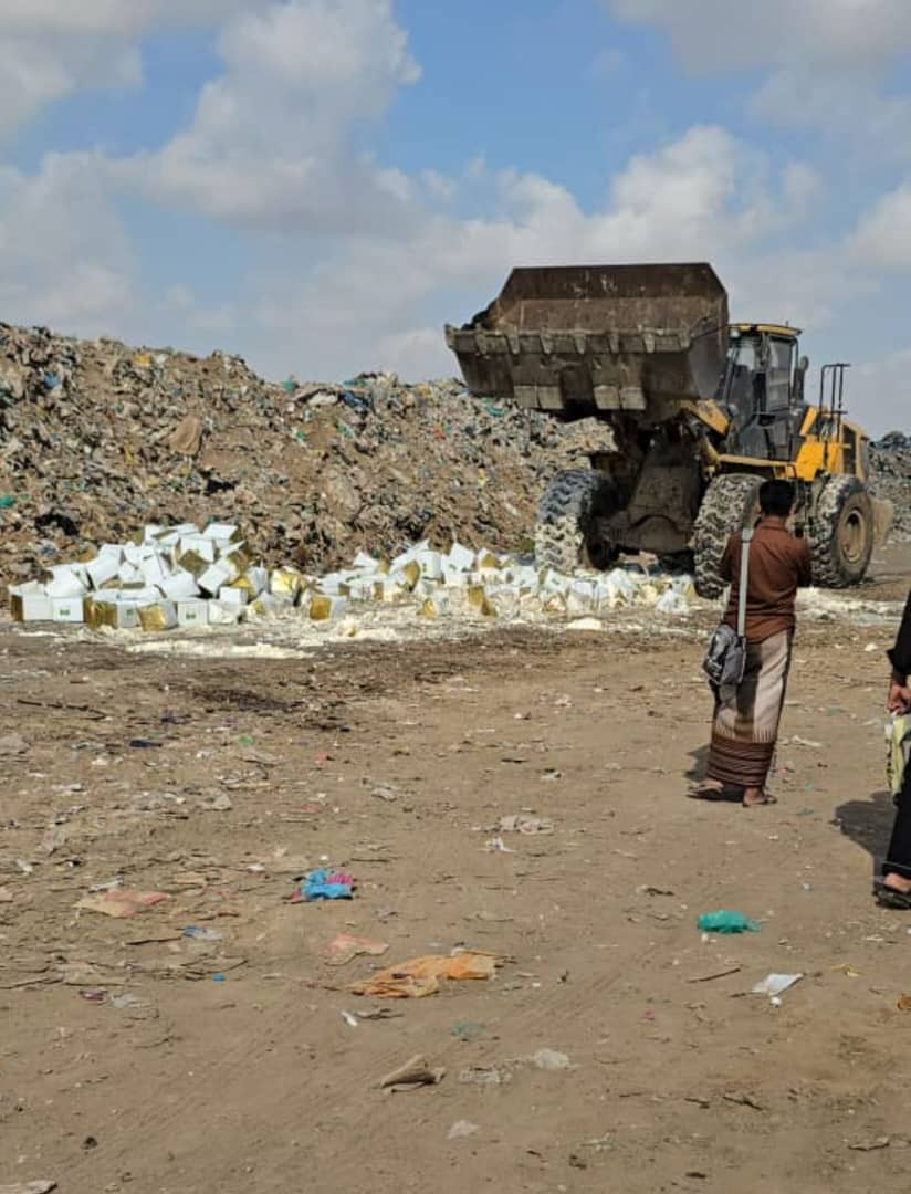 نيابة الصناعة والتجارة بعدن تتلف أكثر من 18 طنًا من الجبن وصلصة الطماطم غير الصالحة للاستهلاك الآدمي
