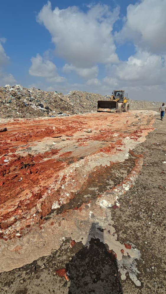 وخلال عملية الإتلاف، أوضحت القاضي جيهان عبدالسلام، عضو نيابة الصناعة والتجارة بعدن، أن كمية صلصة الطماطم المضبوطة كانت قد أُخذت خلال حملات التفتيش بعد ملاحظة انتفاخ العبوات، وهو ما يؤكد فسادها وتعرّضها لظروف تخزين غير سليمة.