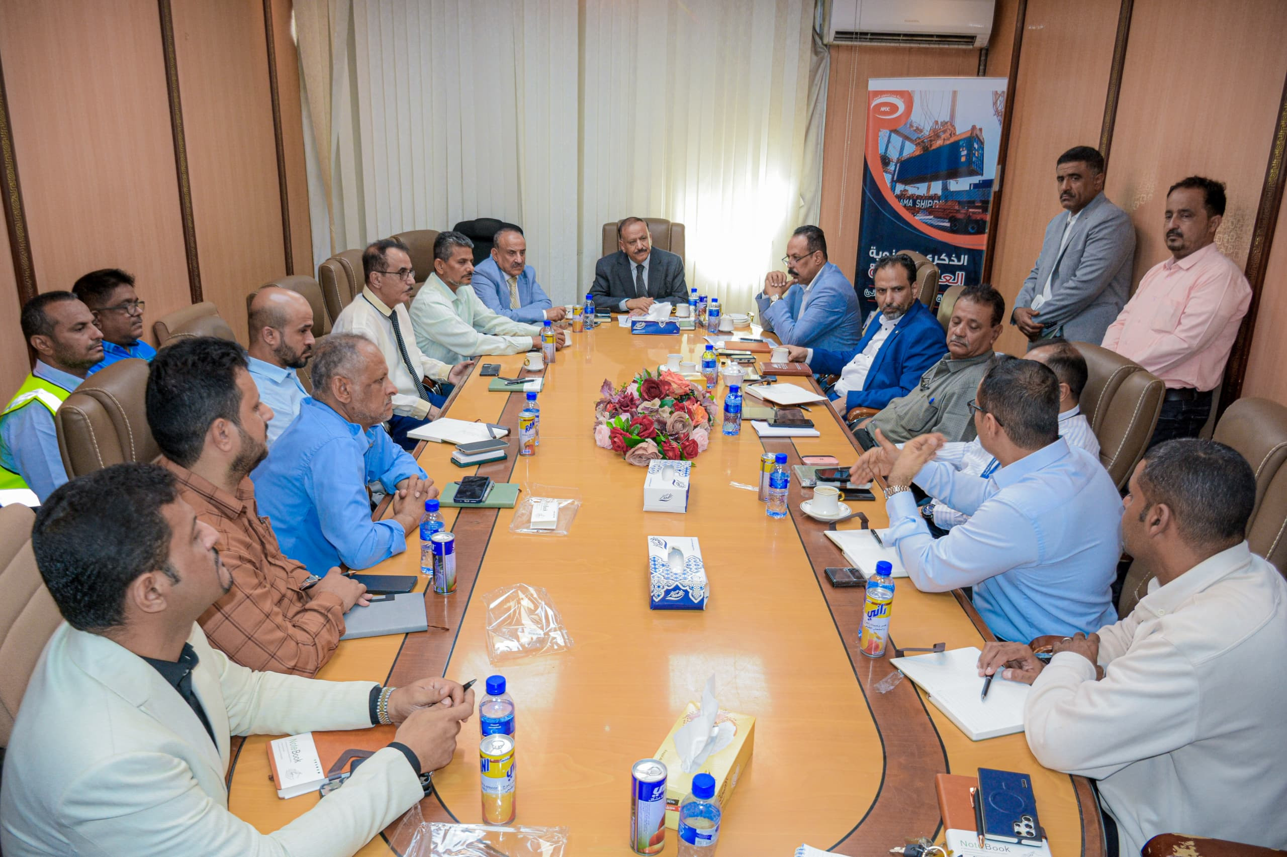 وناقش الاجتماع، الذي ضم وكيل وزارة النقل لقطاع الشؤون البحرية والموانئ القبطان علي الصبحي ورئيس مجلس إدارة صندوق صيانة الطرق المهندس حسين عقربي ونائبه المهندس سامي باهرمز ونائب الرئيس التنفيذي لمؤسسة موانئ خليج عدن المهندس عبدالرب الخلاقي ونائب مدير عام شركة عدن لتطوير الموانئ فضل الحجيلي، والمدير التجاري بمحطة الحاويات الدكتور أشرف قردش، ومستشار مؤسسة موانئ خليج عدن محمد حيدرة، ومسؤولي الجهات المنتدبة والمختصين في المحطة، الأدوار التكاملية بين الجهات المختلفة بهدف رفع مستوى النشاط الملاحي والتجاري لمحطة الحاويات، واستعراض الترتيبات المتعلقة بتنفيذ إجراءات قرار رئيس الوزراء رقم (26) لسنة 2025م، والمتسقة مع قرار مجلس القيادة الرئاسي رقم (11) لسنة 2025م بشأن أولويات الإصلاحات الاقتصادية الشاملة.