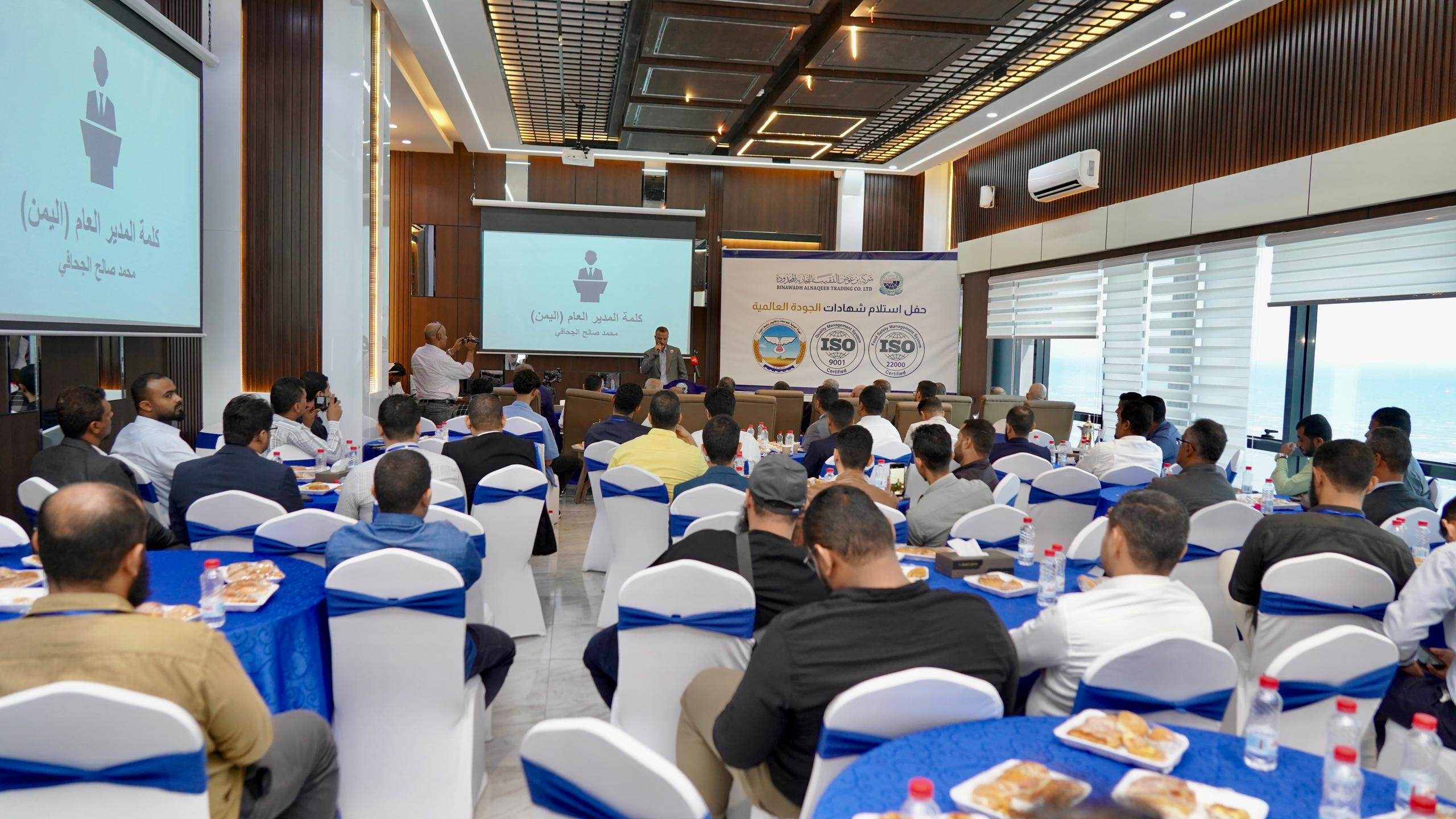 وسلّم ممثل منظمة الآيزو "كريم أحمدي" شهادة الجودة العالمية ISO لمدير عام الشركة فرع اليمن محمد صالح الجحافي، وسط ابتهاج الحاضرين بهذه اللحظة التي طال انتظارها.