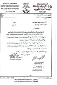 وبحسب مذكرة رسمية وجّهها مدير عام المؤسسة، المهندس مجيب أحمد حاتم الشعبي، فإن عملية التوريد ستتم إلى حساب المؤسسة رقم (1002/17180) لدى البنك المركزي اليمني، تنفيذًا لخطة الإصلاحات الاقتصادية المعتمدة من مجلس القيادة الرئاسي، واستنادًا إلى توجيهات رئيس الوزراء وخطابات وزارة المالية ووزارة الكهرباء والطاقة خلال نوفمبر الماضي.