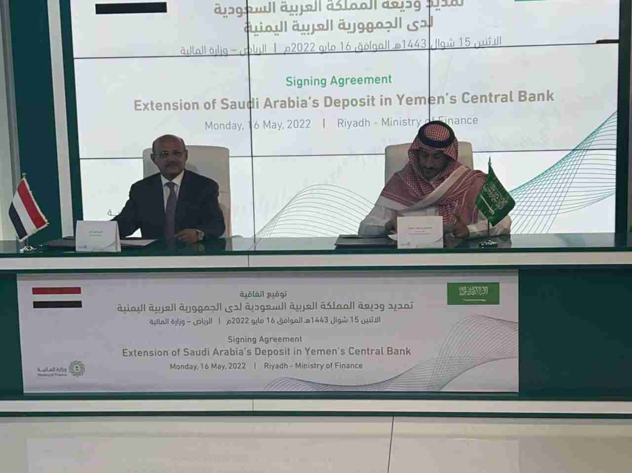 وقّعت وزارة المالية السعودية اتفاقا جديدا مع نظيرتها اليمنية وقيادة البنك المركزي اليمني، يقضي بتمديد وديعة المملكة العربية السعودية لدى الجمهورية اليمنية.